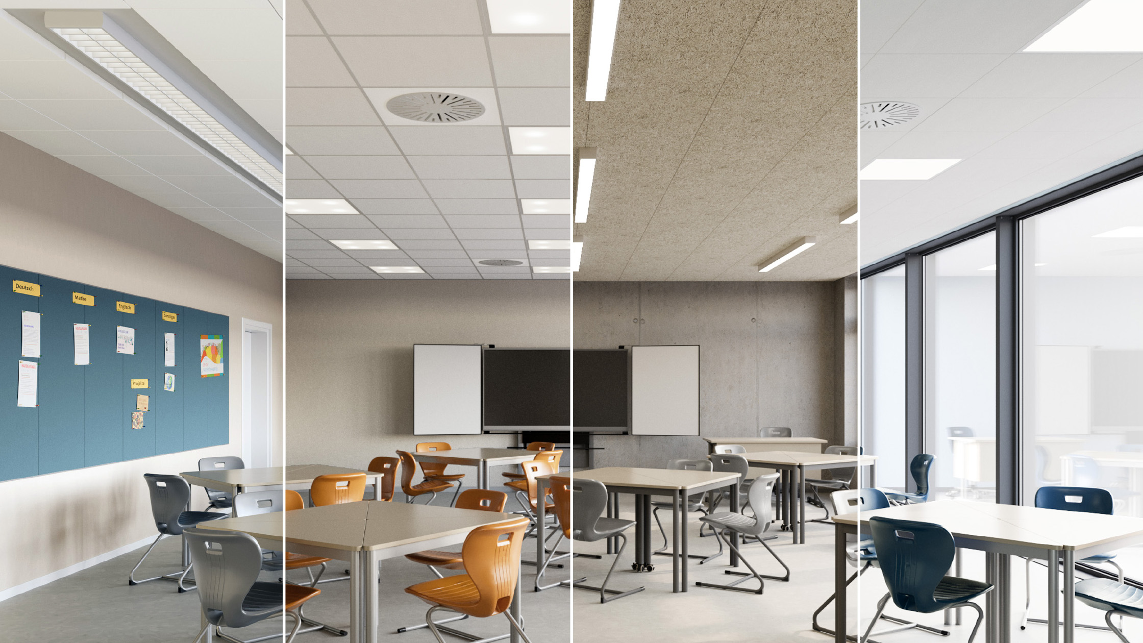 Wir haben Klassenzimmerpakete zusammengestellt, die allen Anforderungen an Akustik, Nachhaltigkeit und Sicherheit gerecht werden. Sie unterstützen unterschiedliche Raumnutzungskonzepte und bestehen aus aufeinander abgestimmten Decken- und Wandelementen.