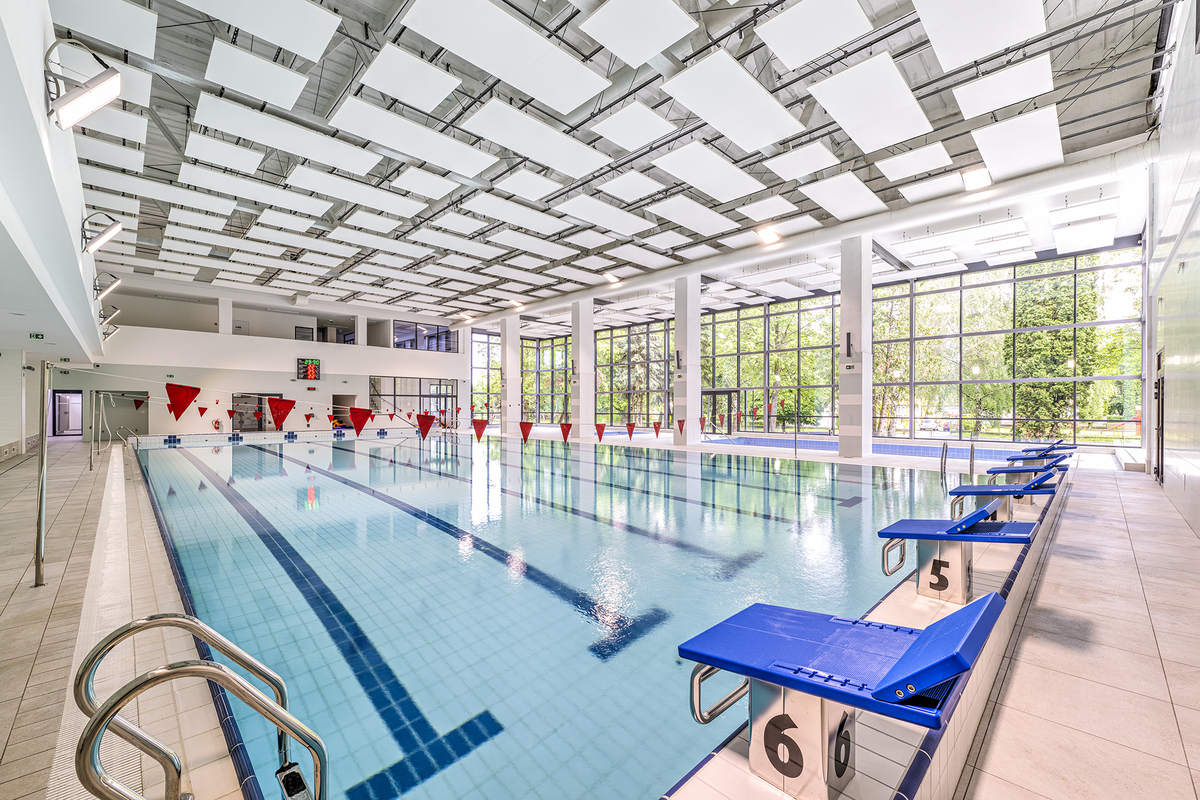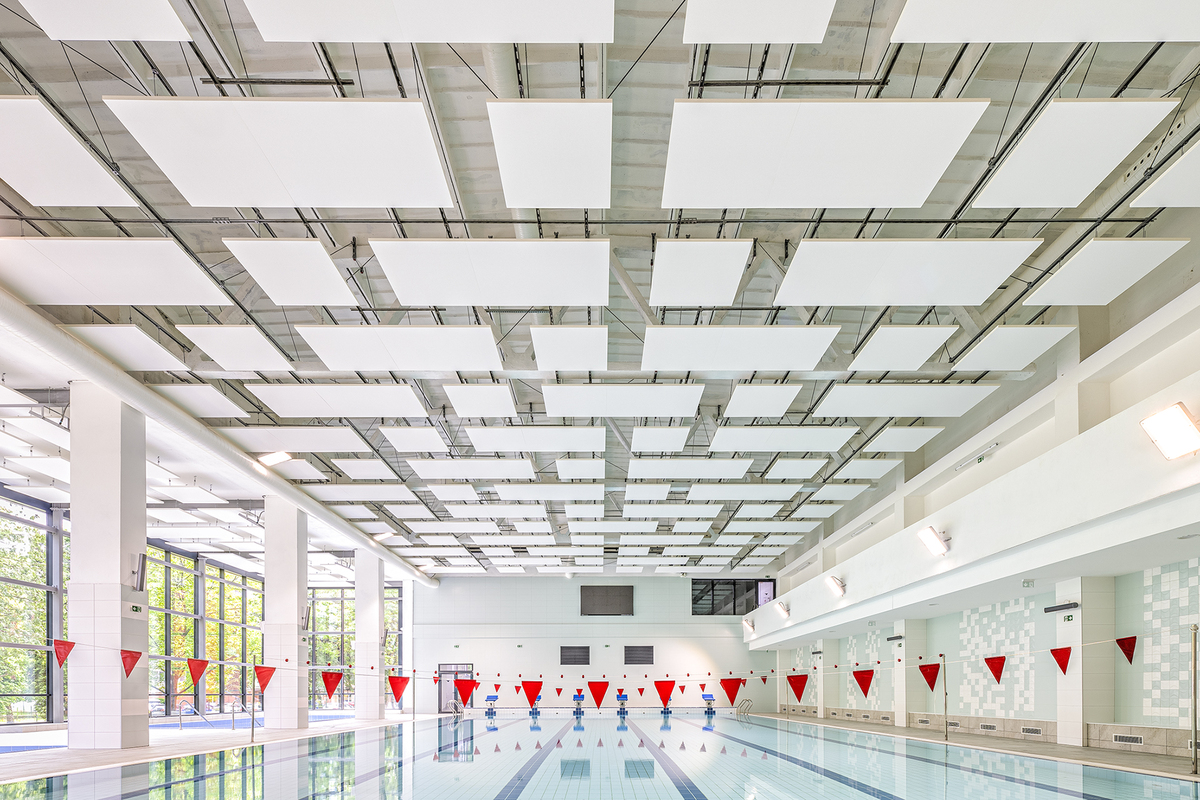 É por isso que a cidade de Michalovce, no leste da Eslováquia, decidiu usar nossos tetos acústicos ao reformar a piscina. Eles, além de garantir uma boa inteligibilidade da fala, permitem que os espaços, incluindo os tetos, sejam desinfetados com regularidade e facilidade, mantendo tudo limpo e higiênico.