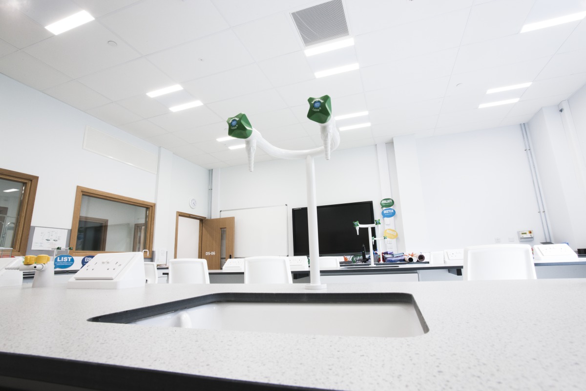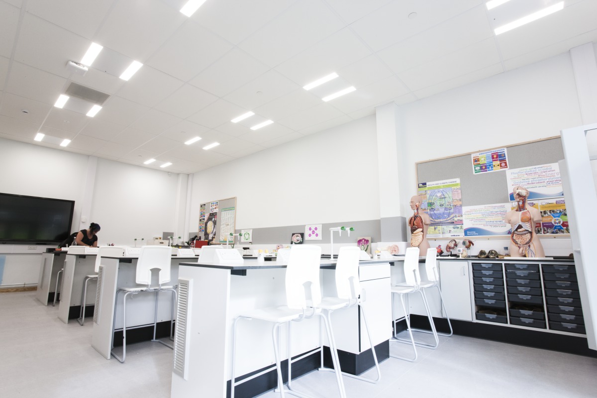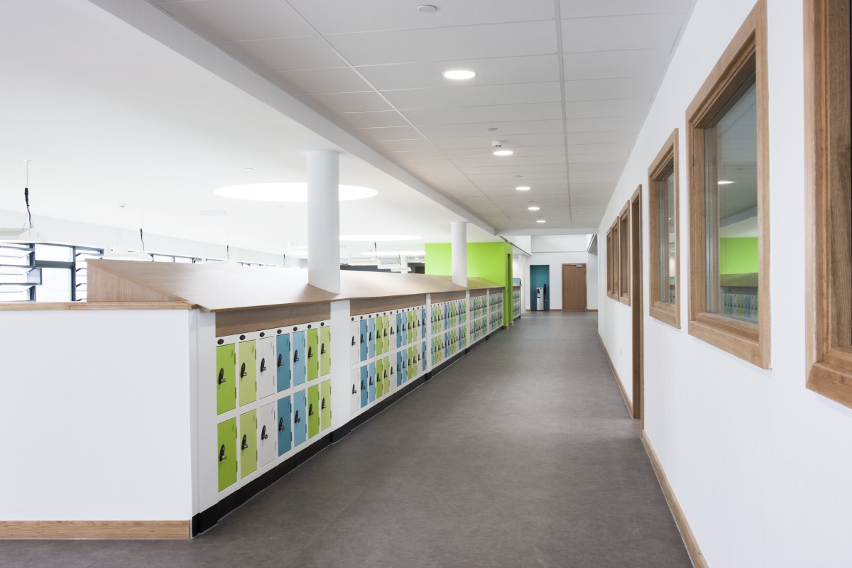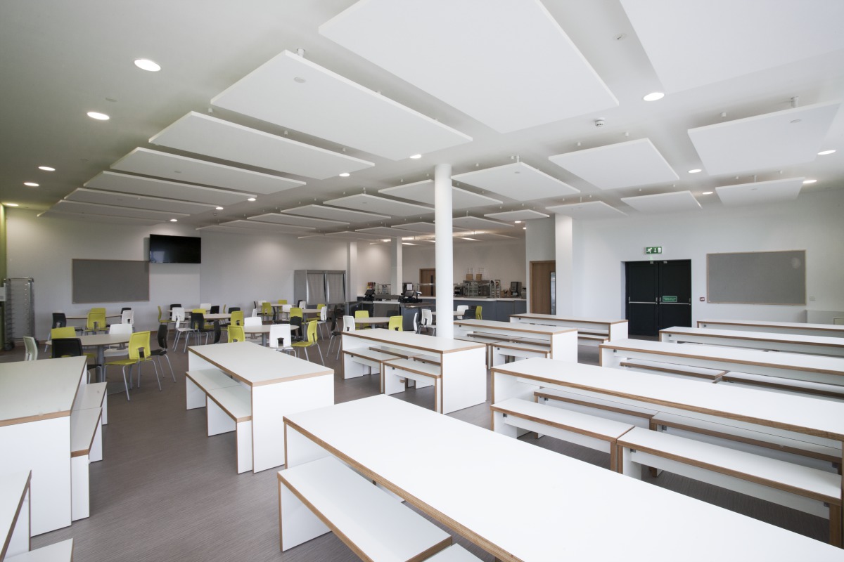 Martin Keogh von Ecophon sagt zu der akustisch-gestalterischen Aufgabe: „Wir haben Akustikdecken und Wandkonzeptionen gemäß der Waterman-Akustikstrategie und der BB93 Akustikrichtlinien für Schulen vorgeschlagen. Im Hinblick auf die akustischen Anforderungen einerseits und das enge Budget eines Bildungsprojektes andererseits war es eine anspruchsvolle Aufgabe, die optimalen Produkte auszuwählen - ganz besonders dann, wenn sich der Kunde ein geradliniges durchgängiges Design wünscht.“