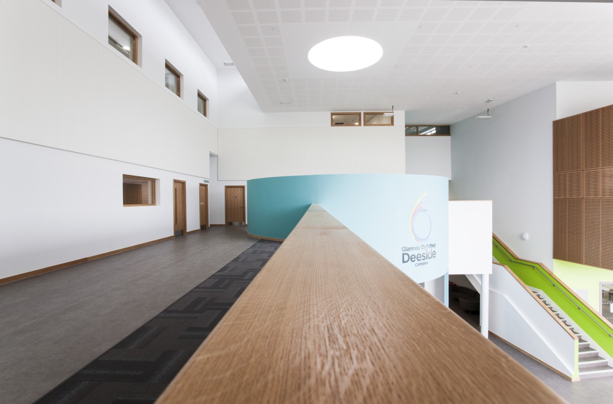 Das College Cambria ist ein neues hochmodernes Oberschulzentrum für über 700 Studenten, das im September 2016 im walisischen Deeside eröffnet wurde. Das Gebäude zeichnet sich durch einen offenen Empfangsbereich, großzügige Hörsäle sowie Aufführungs- und Musikräume aus. Von Beginn an wurde größter Wert auf ein ästhetisches Design gelegt. Da es sich bei dem 14,6 Mio. Pfund teuren Projekt um eine Lehr- und Lerneinrichtung handelt, hatte die Qualität der Raumakustik bei der Planung und Ausführung höchste Priorität.