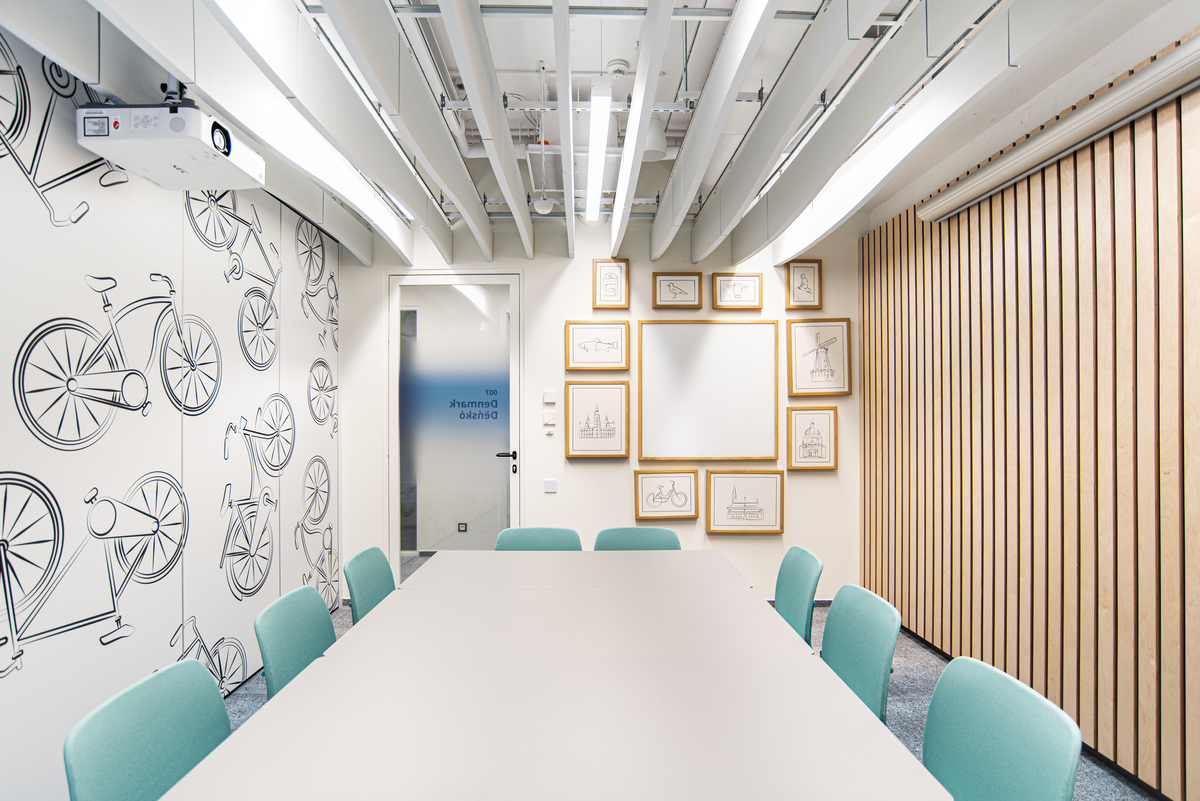 Die Inneneinrichtung des Büros in Gdańsk wurde von der pommerschen Landschaft inspiriert. Das spiegelt sich in den Wänden, der Beleuchtung und den Farbschemata wider, die das Meer, die Gletscherhügel, den Sand und die Wellen imitieren. Um dieses einzigartige Design mit der richtigen Akustiklösung zu ergänzen, wurde die Akustikdecke Ecophon Focus™ E auf der gesamten Freifläche montiert.