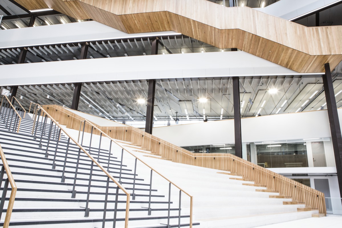 „Nejdůležitější aspekt celého návrhu byla optimální doba dozvuku v různých učebnách. V Arup Acoustics jsme podnikli následující kroky: porovnávali jsme různé metody výpočtu k dosažení lepší spolehlivosti; použili jsme vlastní údaje o měření koeficientu pohltivosti v laboratorních podmínkách i v prostředí budov z databáze Arupu, dále jsme vše porovnávali s daty Ecophonu; společně s architekty jsme navrhli optimální umístění akustických bafflí, včetně úchytného systému, a stěnových panelů pro zajištění maximální pohltivosti. V rané fázi došlo k otestování reálných podmínek v místnostech. Výsledkem byla korelace mezi očekávanými a změřenými hodnotami, vydařený návrh a zejména spokojený dodavatel stavby i zákazník,“ říká Luke Robertson.