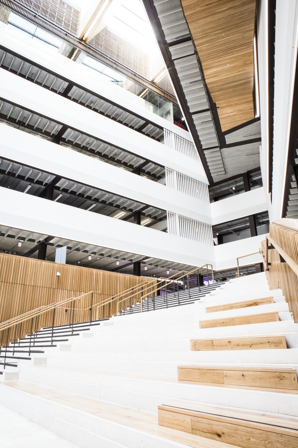 Součástí akustické a tepelné strategie bylo umístění tisíce výrobků Ecophon Baffle v šedé barvě Slate Grey s úchytným systémem, které nevtíravě překryly odhalený betonový strop. Exkluzivní kampus střední školy již obdržel několik ocenění včetně ocenění RICS: Design inovací. Nejnovější ocenění na Skotské soutěži o nejlepší design získali architekti 25. května 2016 v kategorii "Nejlepší veřejná budova" a "Architectural Grand Prix".