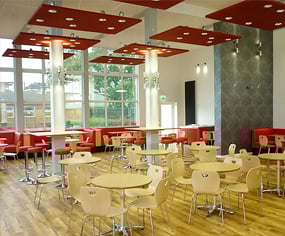 Běžné školní jídelny lze charakterizovat jako místa s tvrdými povrchy a materiály, která odráží hluk.