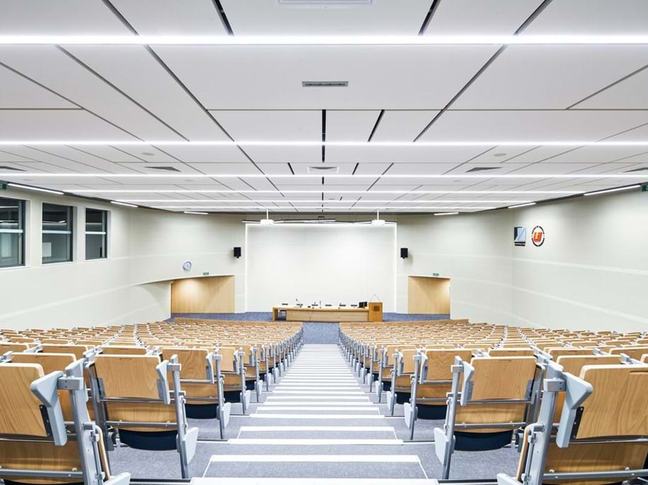 Ecophon Solo Matrix Celsius ist dank einheitlicher Formate beider Paneelarten flexibel planbar, auf jeden Anspruch anpassbar und geeignet für Neubau wie Bestand.