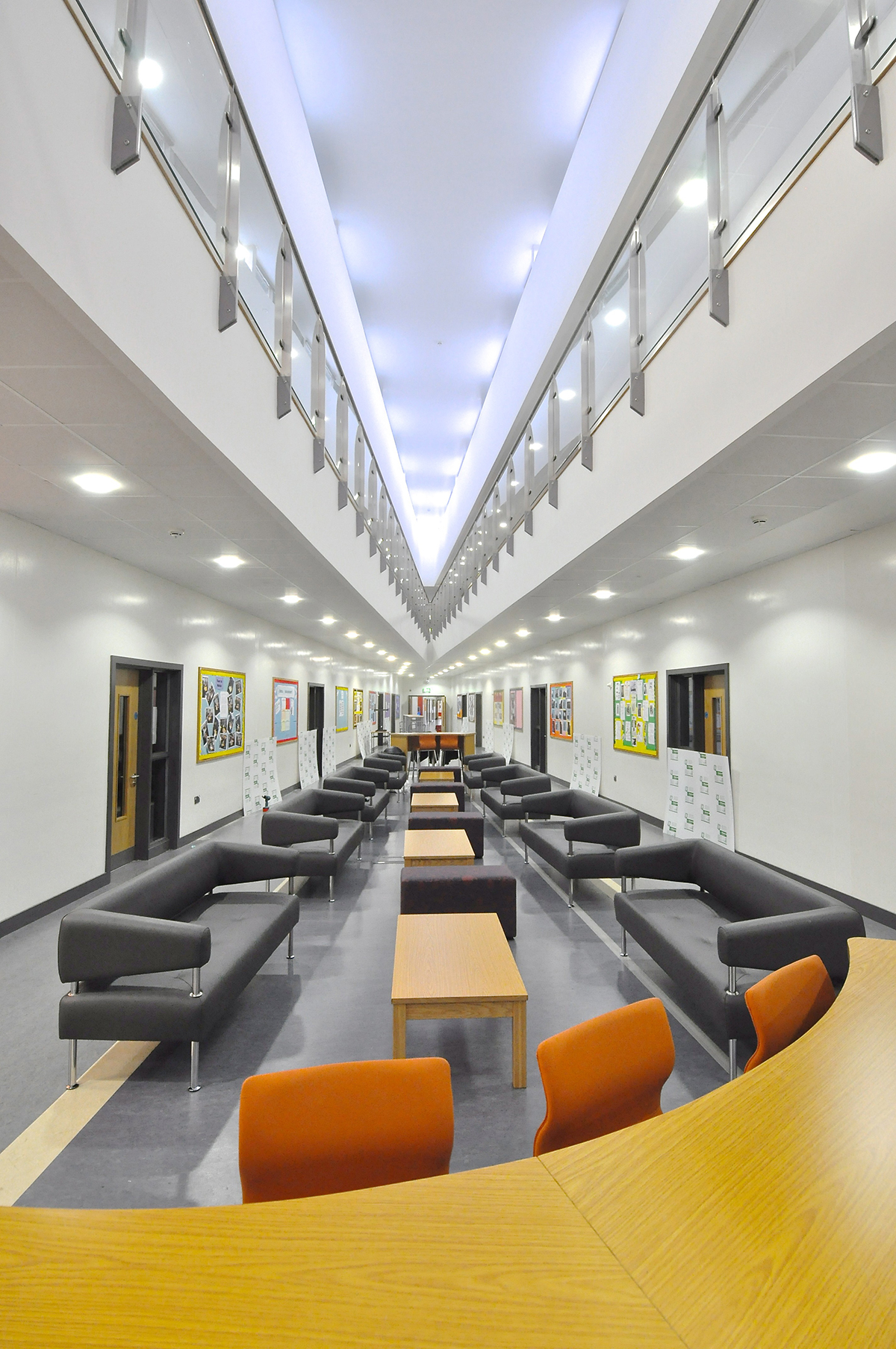 Mit dem Lagan College konnte Ecophon Vielseitigkeit und Kompetenz für spezielle raumakustische Anforderungen unter Beweis stellen. Angefangen beim Foyer und der Vorhalle über die Klassenräume und Flure bis hin zur Sporthalle und den Umkleideräumen – im gesamten Lagan College fanden Ecophon Systeme ihre perfekte Verwendung: