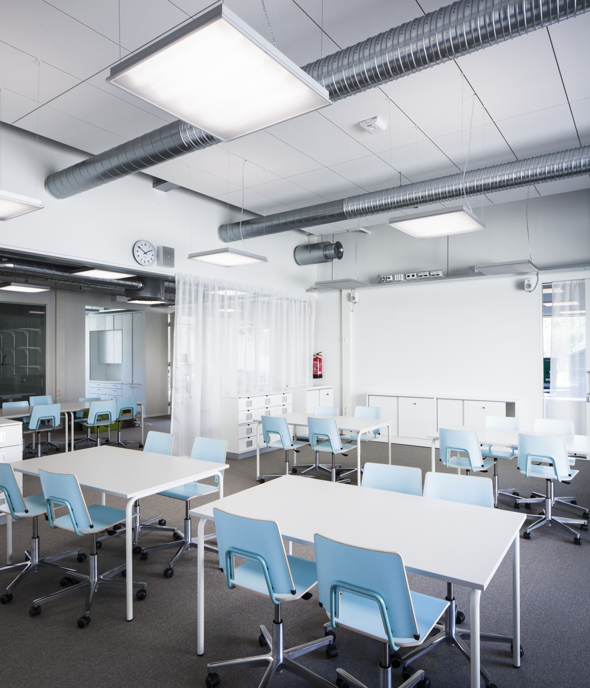 Eines der Hauptziele guter Raumakustik besteht darin, Kommunikation und Interaktion zu fördern. Schlechte akustische Bedingungen führen zu Konzentrationsproblemen, Müdigkeit und Stress. Die Lehr- und Lerneinrichtungen in Opinmäki wurden auf der Basis einer akustischen Raumplanung eingerichtet, bei der sowohl die unterschiedlichen Nutzungen für jeden Raum als auch die technischen Einrichtungen definiert wurden.