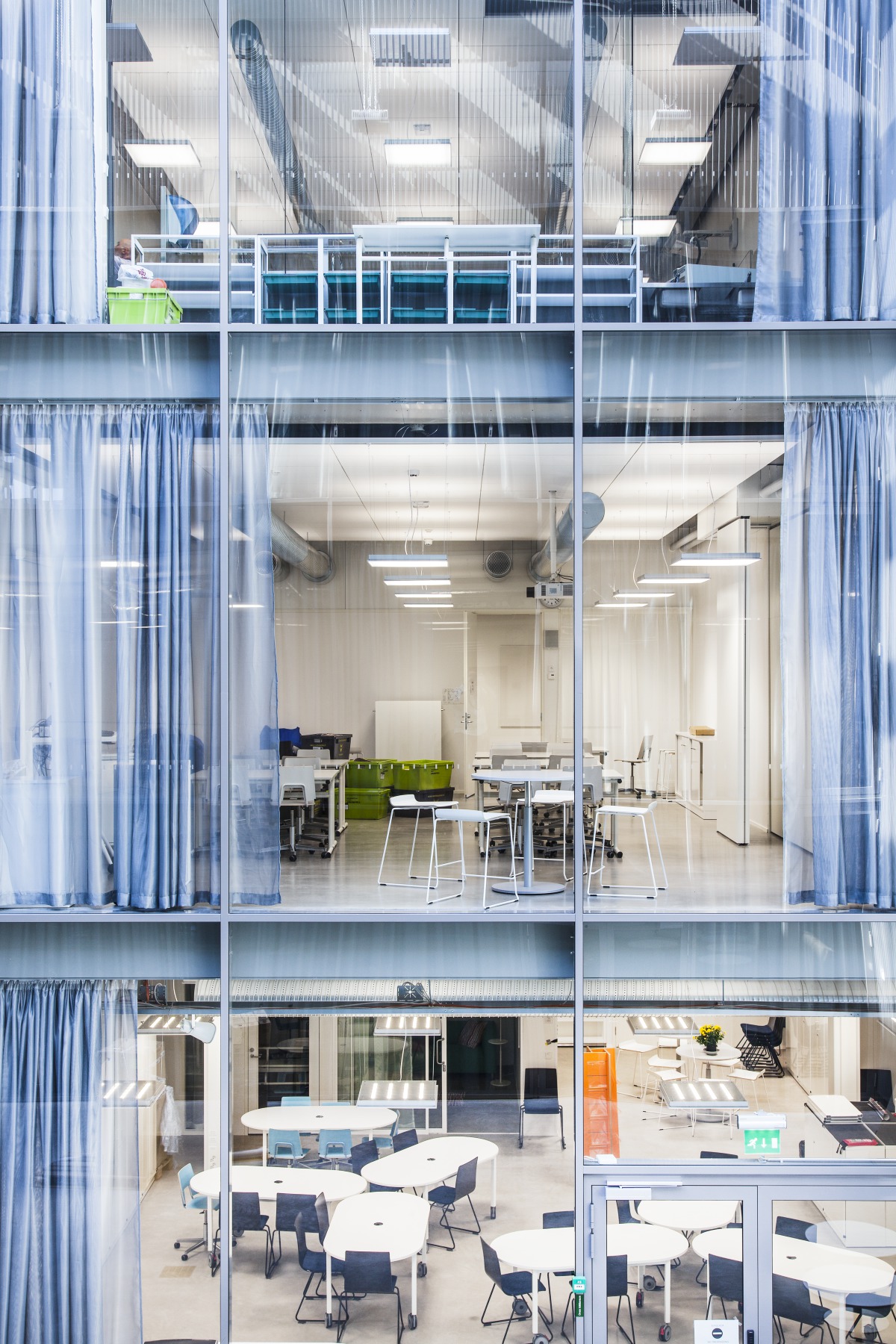 “Vor den Planungen mit den Architekten wurden Gespräche und Diskussionen mit den verschiedenen Nutzergruppen geführt, um alle Ideen und Interessen berücksichtigen zu können. Das städtische Schulamt von Espoo brachte seine pädagogischen Erfahrungen mit ein und formulierte spezifische Wünsche für die Raumgestaltung, um neue Wege beim Lehren und Lernen zu ermöglichen,” sagt Pekka Vikkula.