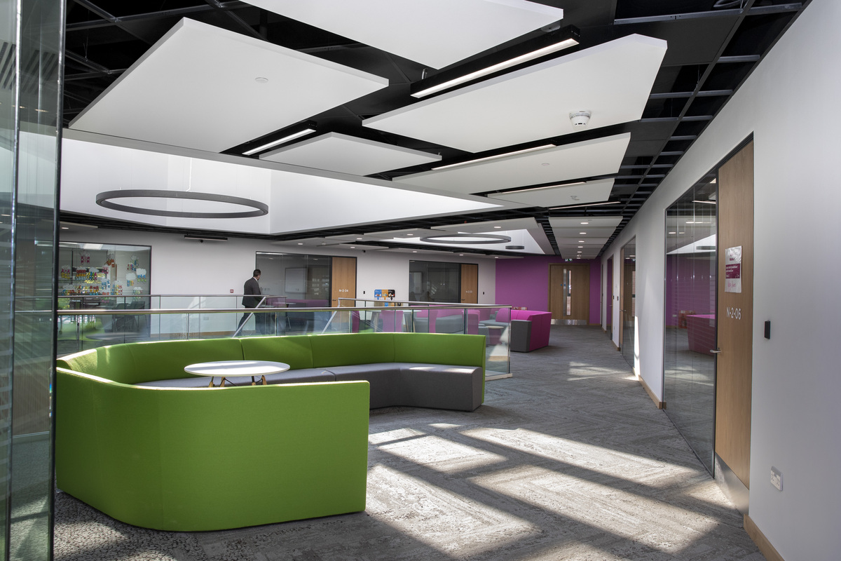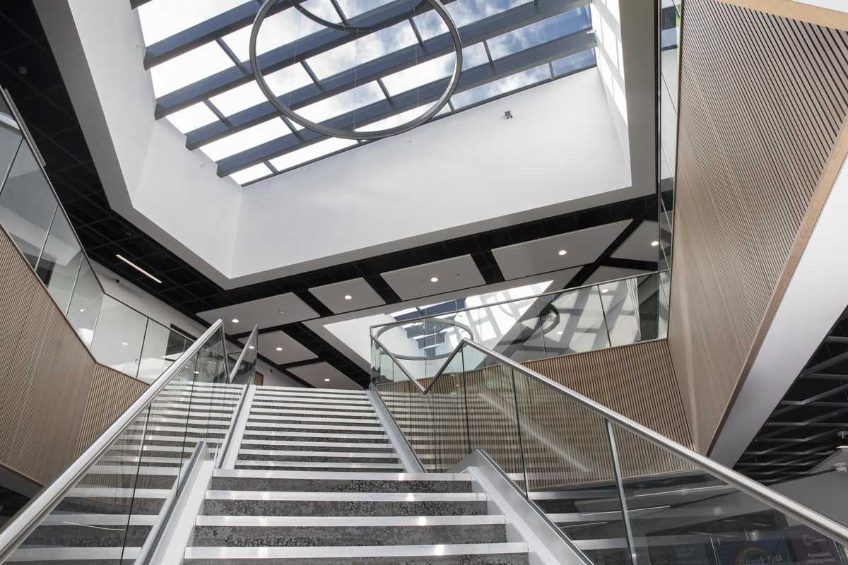 Der Yale-Campus des Coleg Cambria in Wrexham, Nordwales, wurde in den letzten zwei Jahren umfassend umgestaltet. Das neue Gebäude umfasst ein Atrium, Räume für soziale Zusammenkünfte, Lernbereiche, Unterrichtsräume und Verwaltungseinrichtungen.