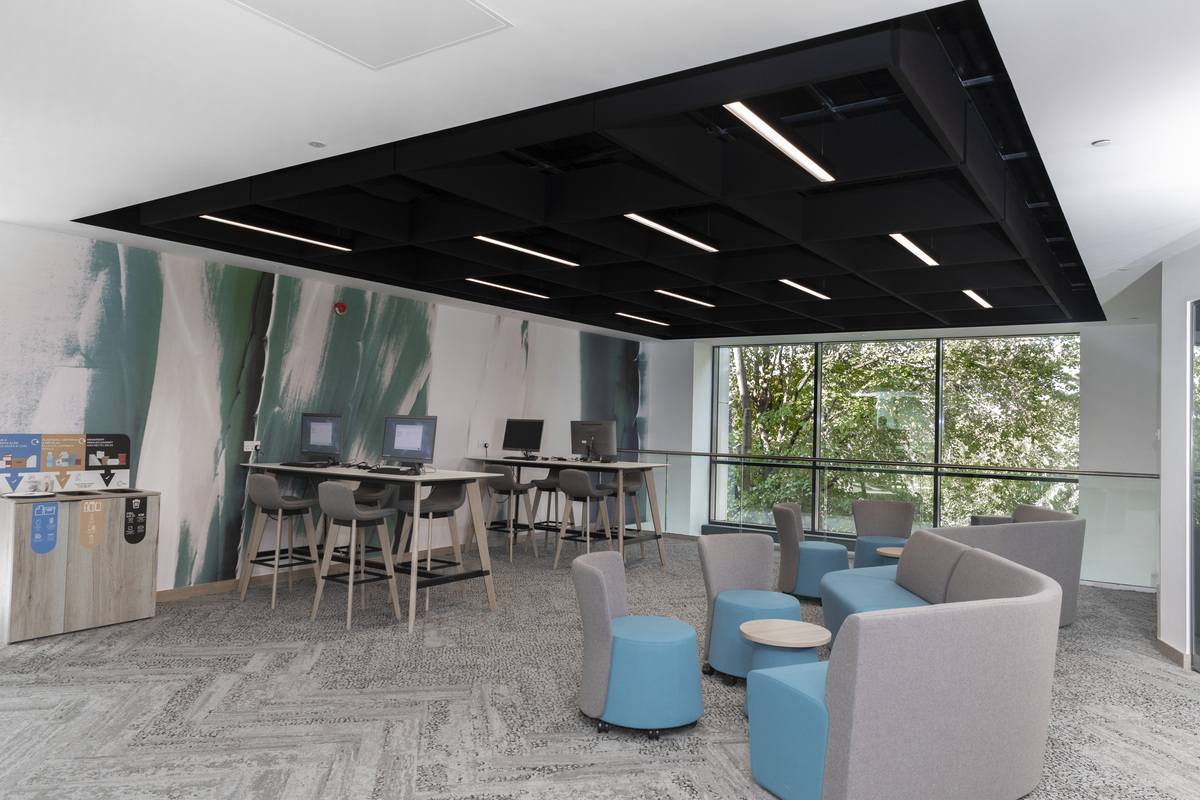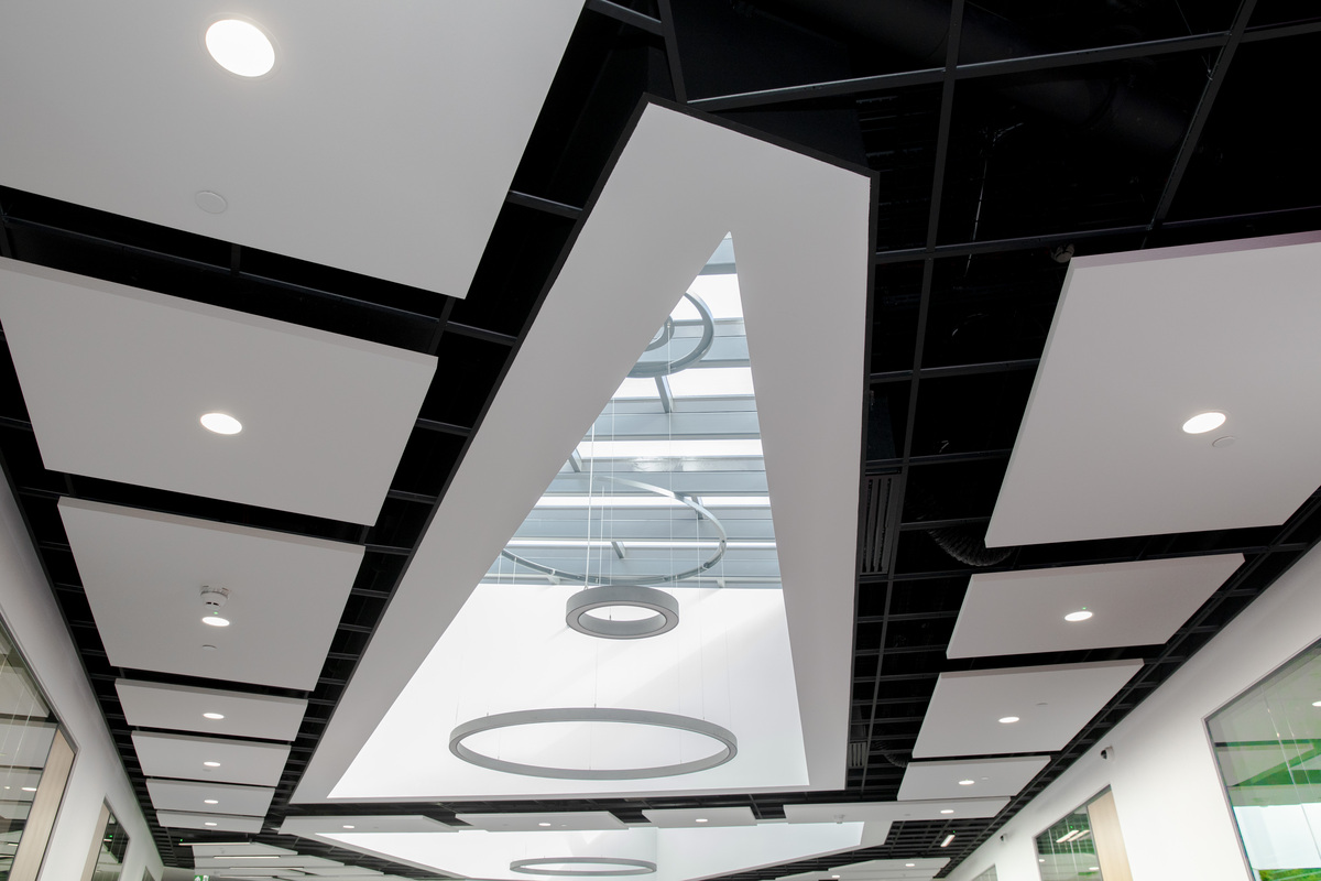 Das Ecophon-Team arbeitete während des gesamten Prozesses eng mit dem Architekten und der Baufirma zusammen, um die Montage der speziell entwickelten Schallabsorber zu gewährleisten. Außerdem wurden akustische Berechnungen durchgeführt, um die für Schulgebäude erforderlichen akustischen Leistungsstandards zu erfüllen.