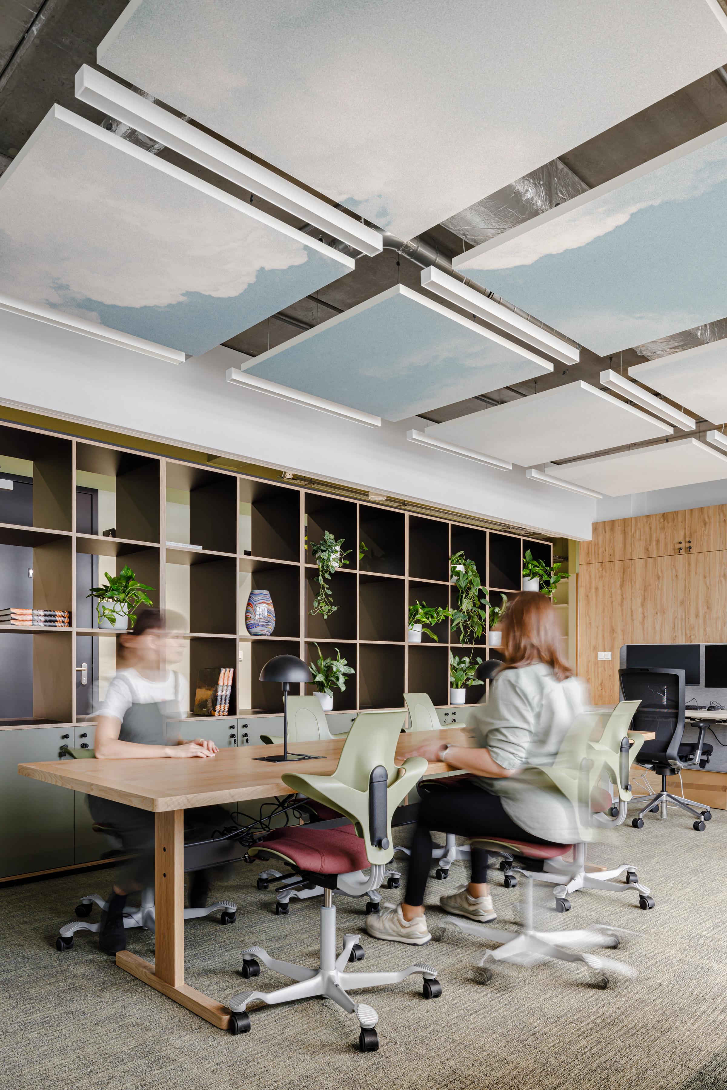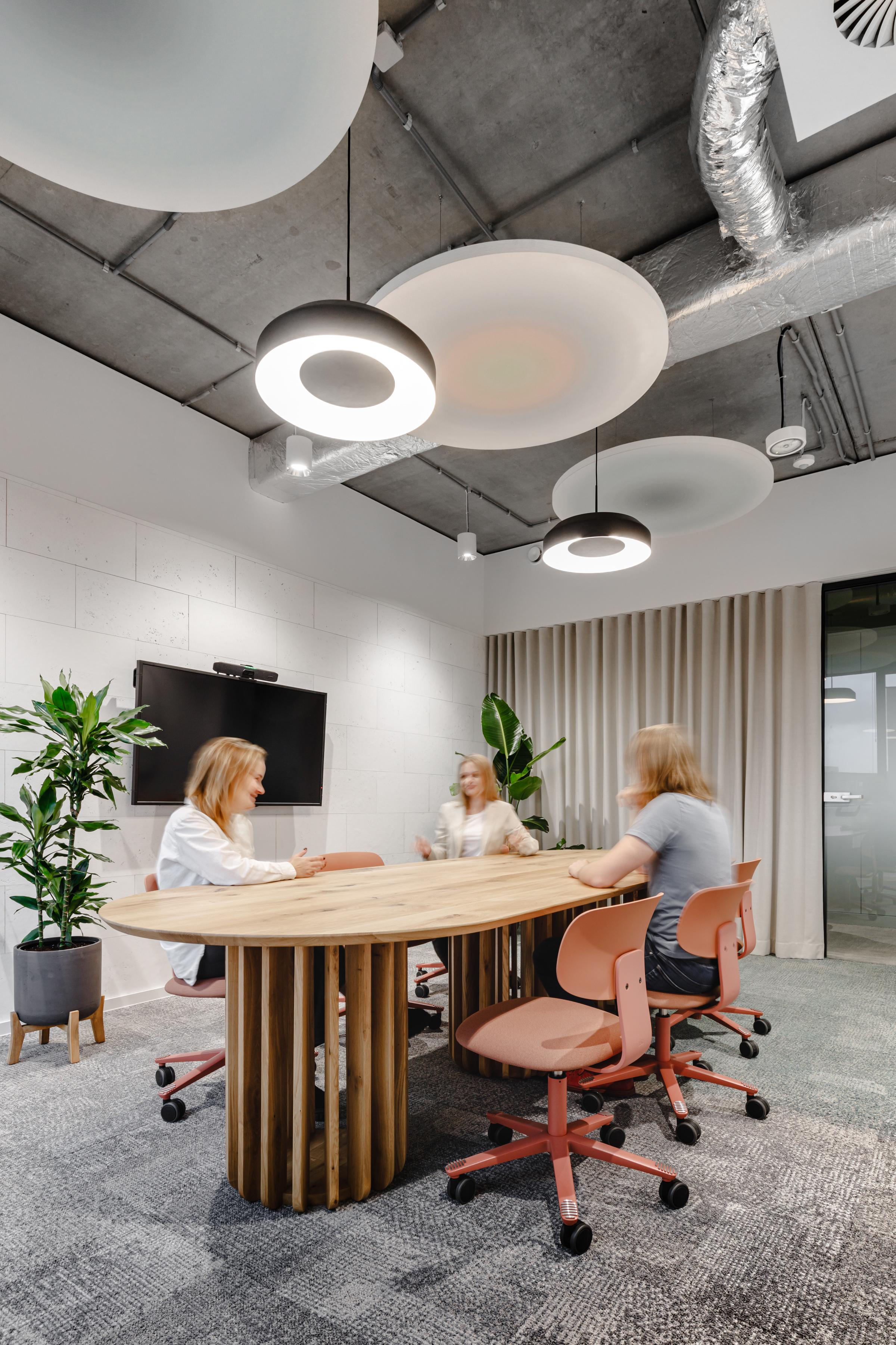 "Man könnte meinen, dass die Rückgewinnung von Baumaterialien viel schwieriger wäre, aber es stellte sich schnell heraus, dass dies nicht der Fall war. Dank durchdachter Änderungen an der alten Einrichtung konnten wir den größten Teil der Gipskartonwände, alle Türen und Glaswände beibehalten. Bei der Gestaltung der Inneneinrichtung verwendeten wir teilweise vorhandene Möbel und hochwertige Möbel, die zuvor in anderen Büros des Mieters verwendet wurden. Insgesamt erhielten etwa 80 % der Möbel ein zweites Leben", erklärt Daria Żarnoch vom Workplace-Designteam.