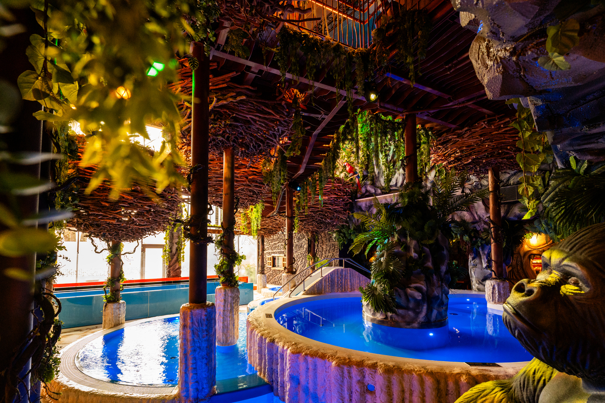 Bei der Renovierung des Mustamäe Elamus Spa entstand ein visuelles Highlight: Die Deckenkonstruktion besteht aus bedruckten Akustikpaneelen des Typs Ecophon Solo Square Akutex HS, die in Zusammenarbeit mit dem Architekturbüro UDDU und Ecophon entwickelt wurden. Das Ergebnis ist eine akustische Decke, die nicht nur visuell beeindruckt, sondern auch effektiv den Schall im Umfeld des Wasserparks absorbiert – und so das Spa-Erlebnis insgesamt entspannter und angenehmer macht.