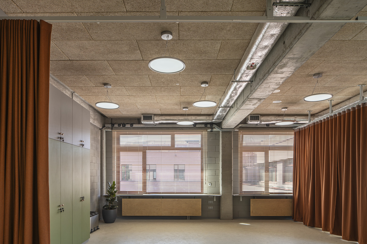Um diese zu bewältigen, wurde von Anfang an großer Wert auf akustischen Komfort gelegt. Die Klassenzimmer und die Sporthalle wurden mit Ecophon Saga Holzwolle-Systemen ausgestattet, die effektiv Echo und Hintergrundgeräusche reduzieren. Das Ergebnis ist eine Umgebung, in der sich die Schüler konzentrieren können und Lehrkräfte klar verständlich sind.