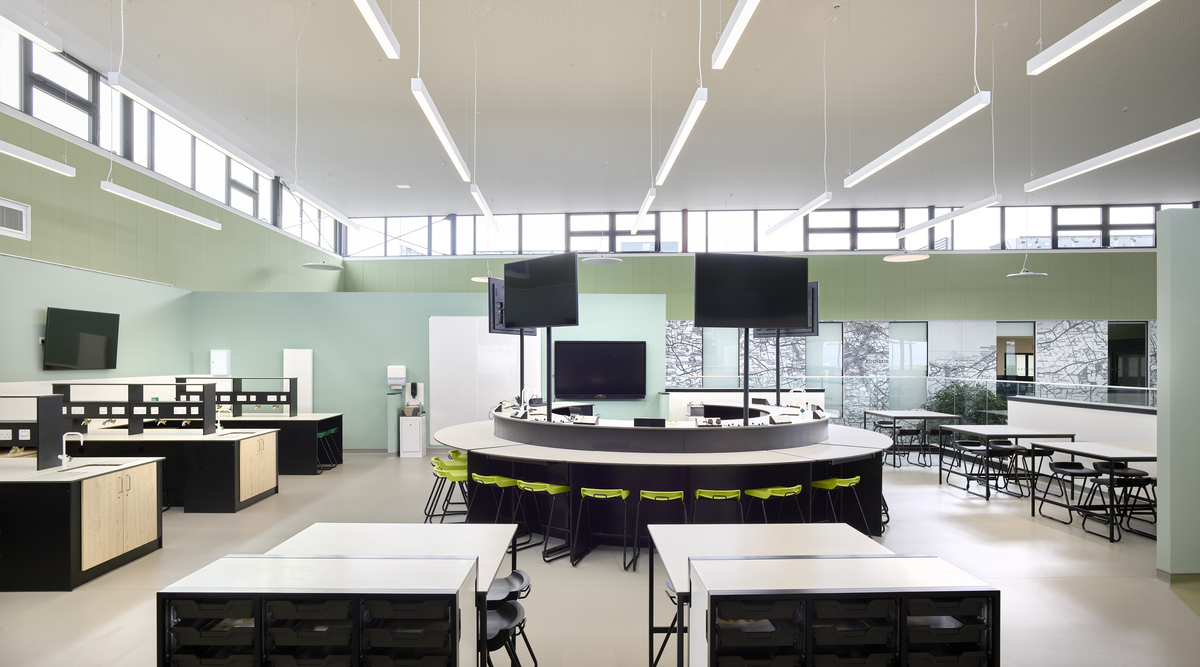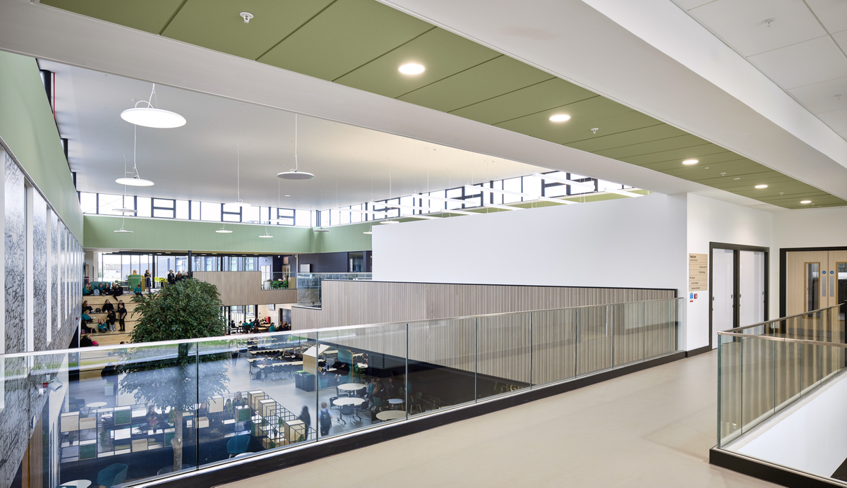 In Zusammenarbeit mit JM Architects konnte Ecophon verschiedene Akustiklösungen anbieten, die auf dem gesamten Campus zum Einsatz kommen und einen hohen ästhetischen Anspruch haben.