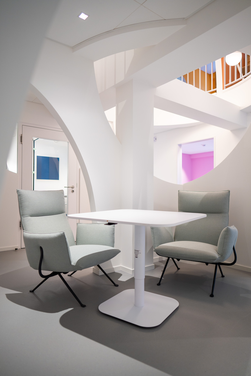 The extension of Monheim town hall introduced vibrant, design-led spaces that promote communication and collaboration through bold colours and open layouts.