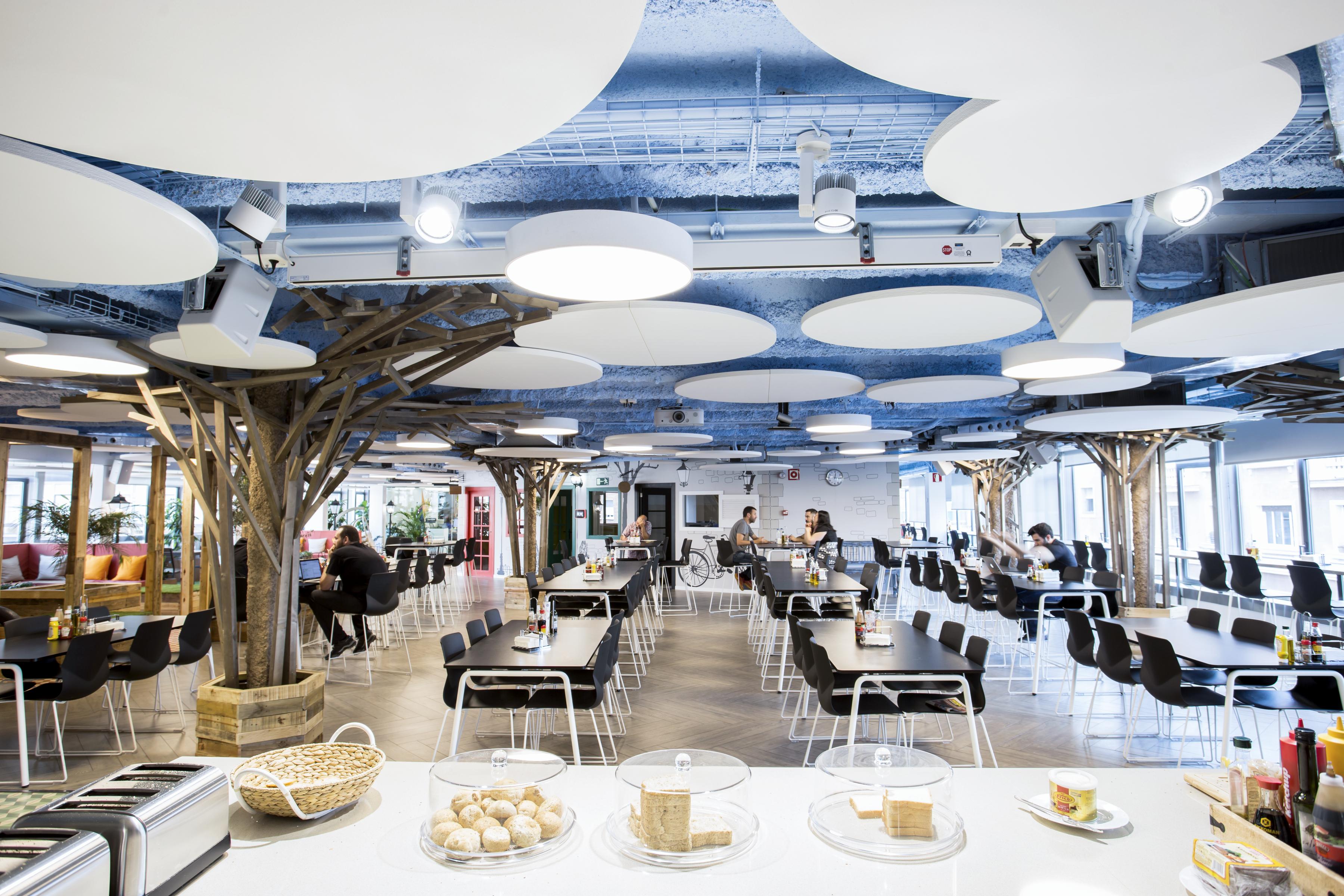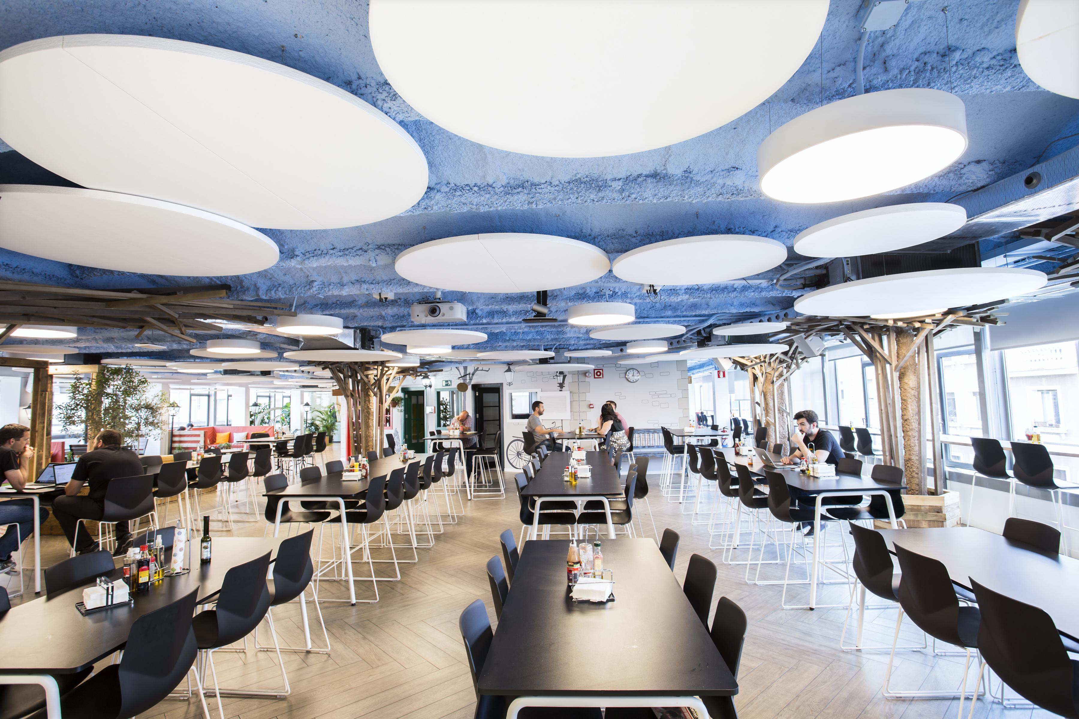 Cuando King diseño su espacio multifuncional para sus oficinas en Barcelona, se decidieron por soluciones Ecophon por razones acústicas y estéticas.