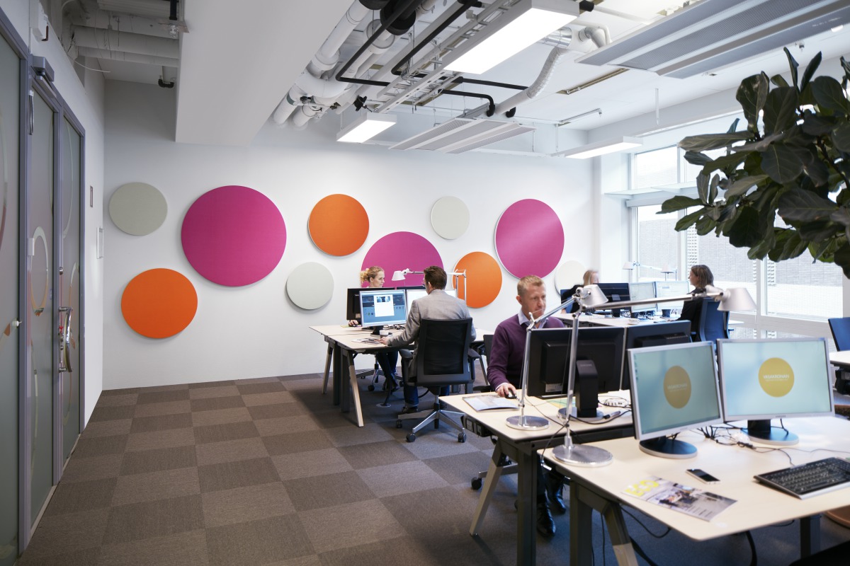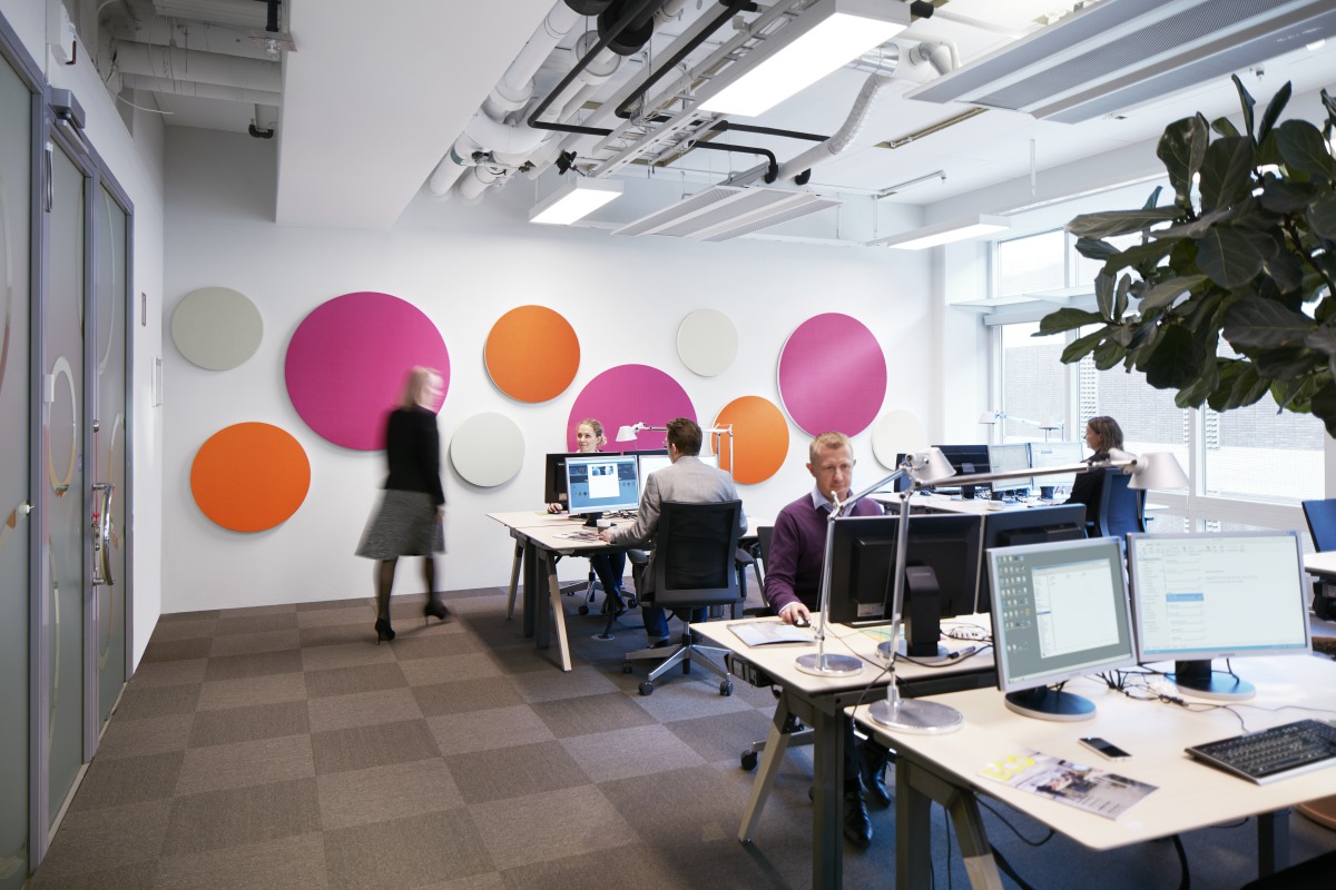 Todas las actividades son diferentes y necesitan su propia solución acústica. En este caso, las actividades incluyen el trabajo en concentración, tanto en entornos abiertos y sentados en cabinas privadas más pequeñas. |