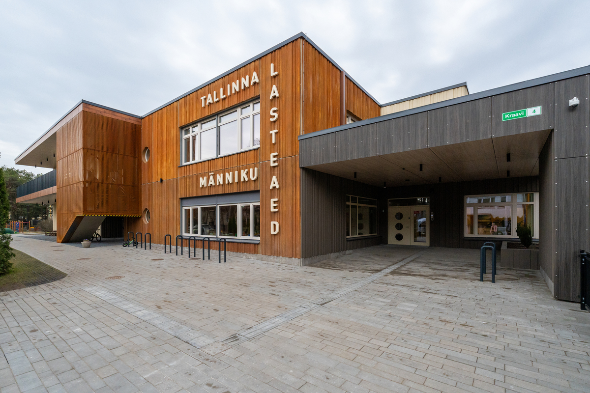 In 2023, the Männiku kindergarten underwent a complete transformation. The outdated building was demolished and replaced with a modern, two-storey, energy-efficient facility designed to support both learning and wellbeing. The new kindergarten now offers 10 group rooms for 224 children, complemented by two spacious halls, classrooms for cooking and robotics, a winter garden, inviting reading nooks and a variety of outdoor play areas.