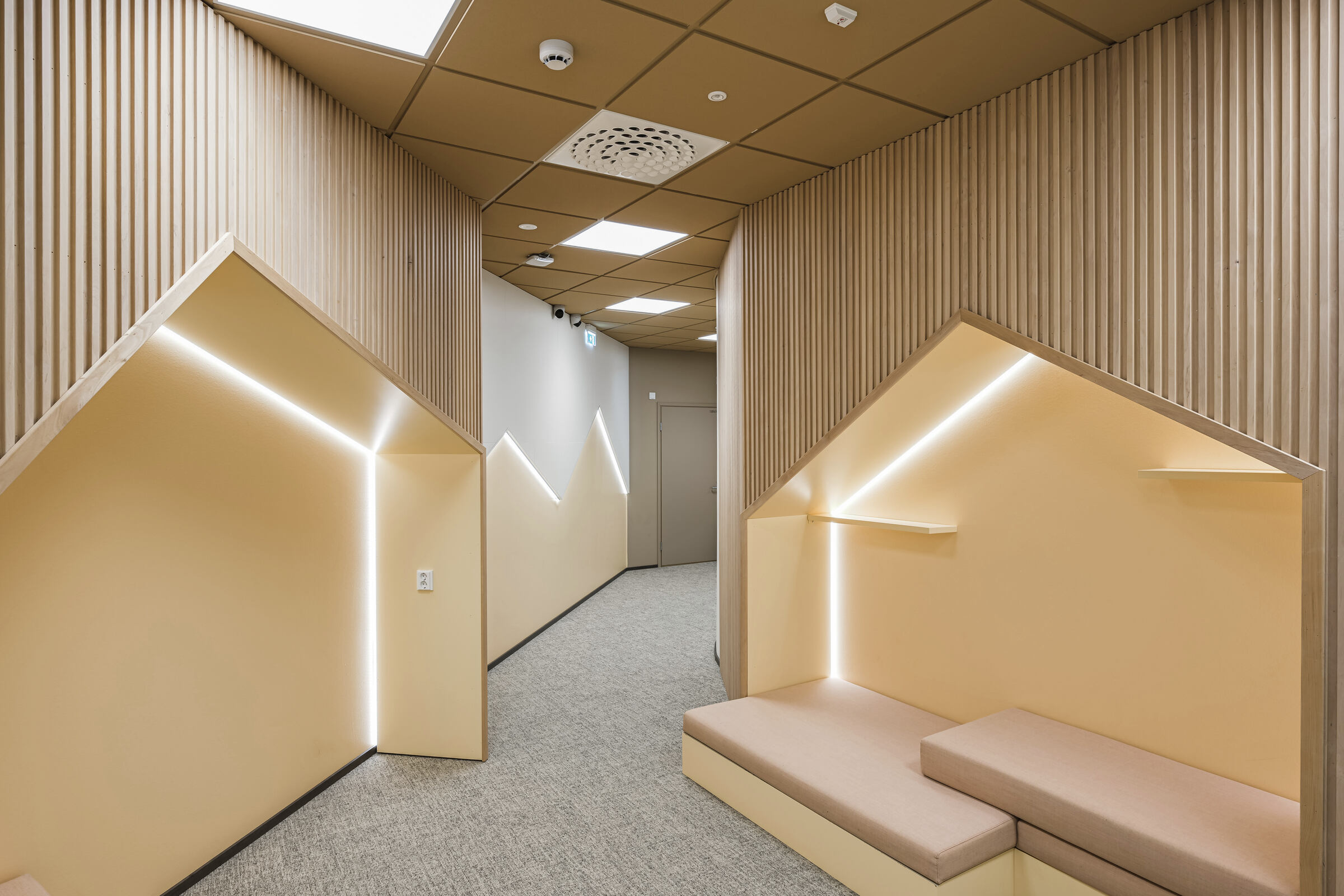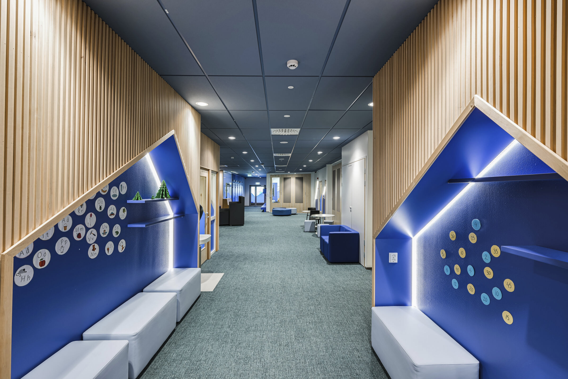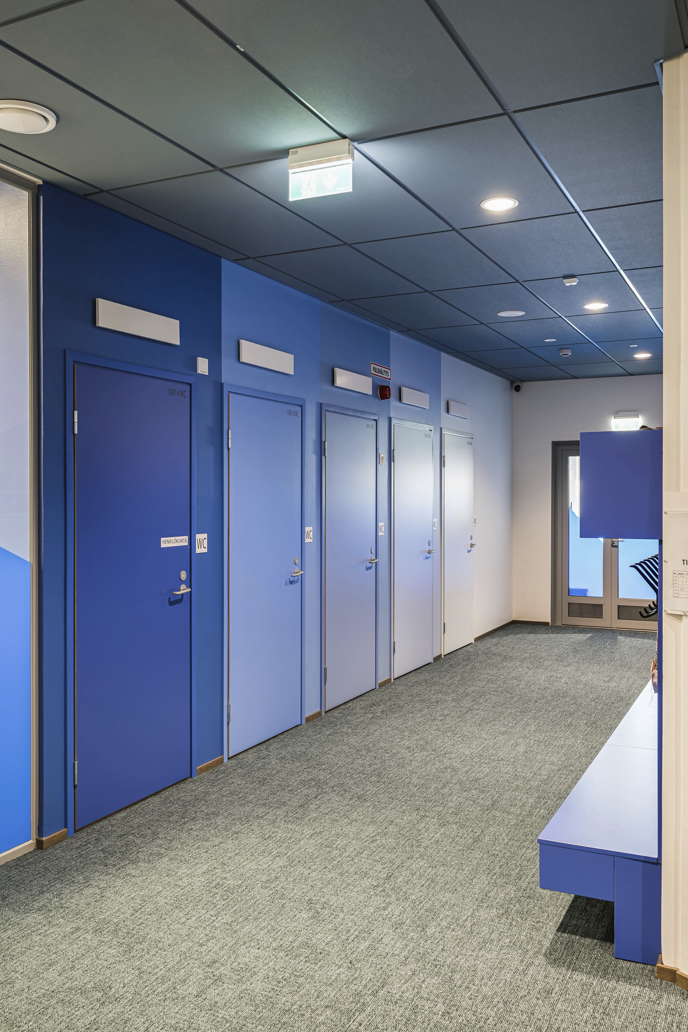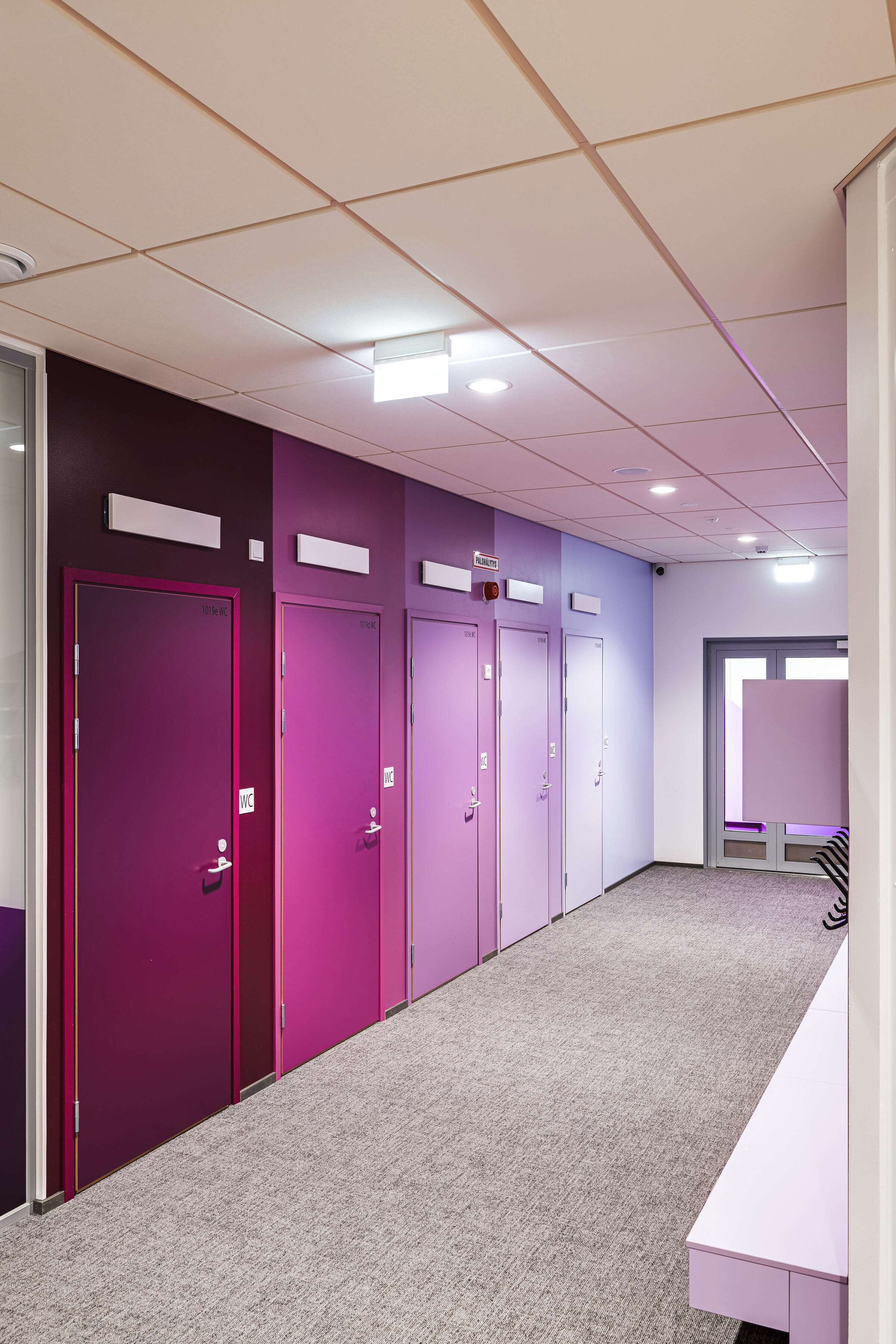 Vuonna 2022 valmistuneessa Karsikon koulussa suurin osa alakatoista on toteutettu hauskan värisillä Ecophonin Focus E -akustiikkalevyillä, jotka vaimentavat tehokkaasti melua niin luokkahuoneissa kuin avoimissa oppimisympäristöissä. Lehden muotoiset, leijuvat Solo-akustiikkapaneelit luovat aulaan veikeän tunnelman.