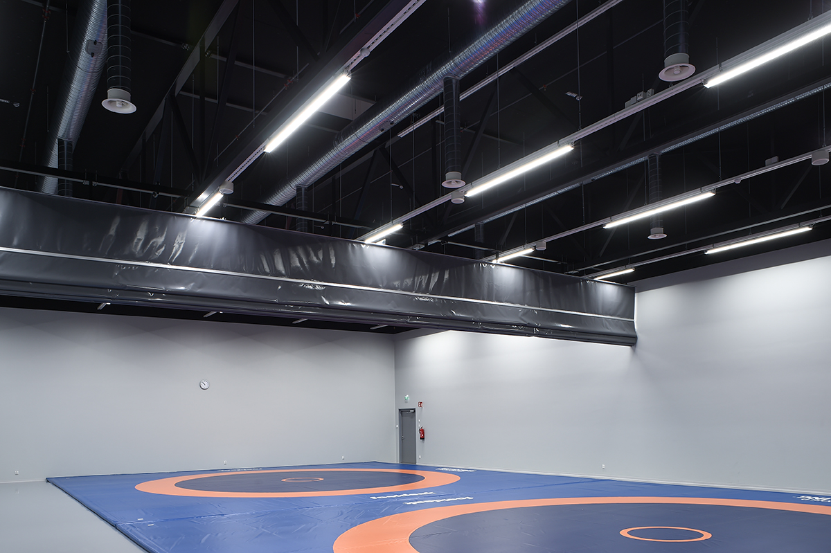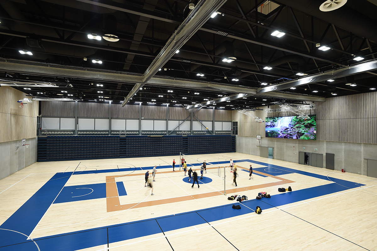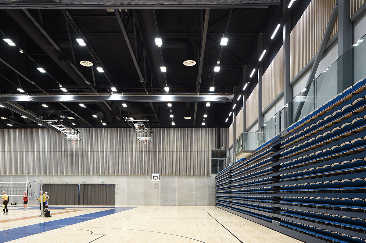 – Matalammat, iskuille alttiit hallit joudutaan yleensä tekemään iskunkestävällä valkoisella Super G -levyllä. Ouluhallissa tilojen korkeus mahdollisti huopapintaisen ja kustannustehokkaan, mutta myös visuaalisesti näyttävän akustiikkalevyn käytön, kertoo Ecophonin Pohjois-Suomen aluemyyntipäällikkö Erik Hako-Rita.