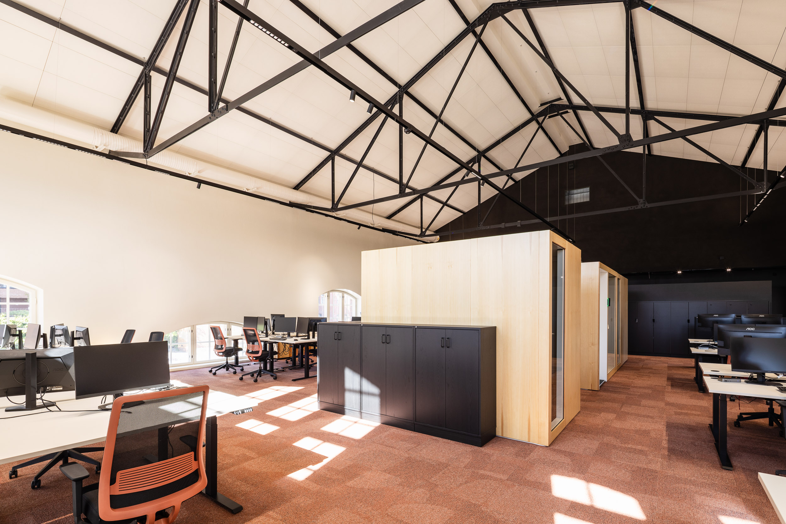 Myös kattilahallin parven alle lisättiin akustiikkaa: avattavana alakattona toimii täydellisesti tilan estetiikkaan sulautuva musta Ecophon Focus Dg -järjestelmä, jossa on A-luokan absorptiokyky. Ratkaisu vähentää kaikumista ja pehmentää tilan äänimaailmaa.