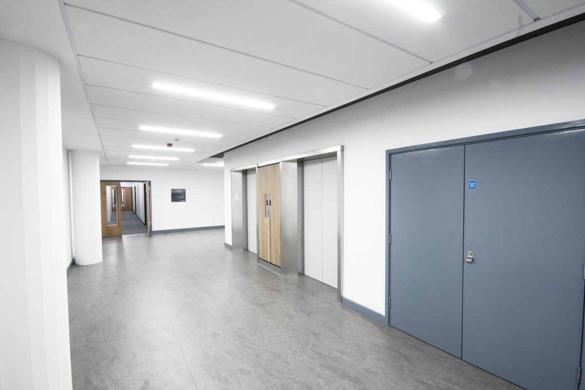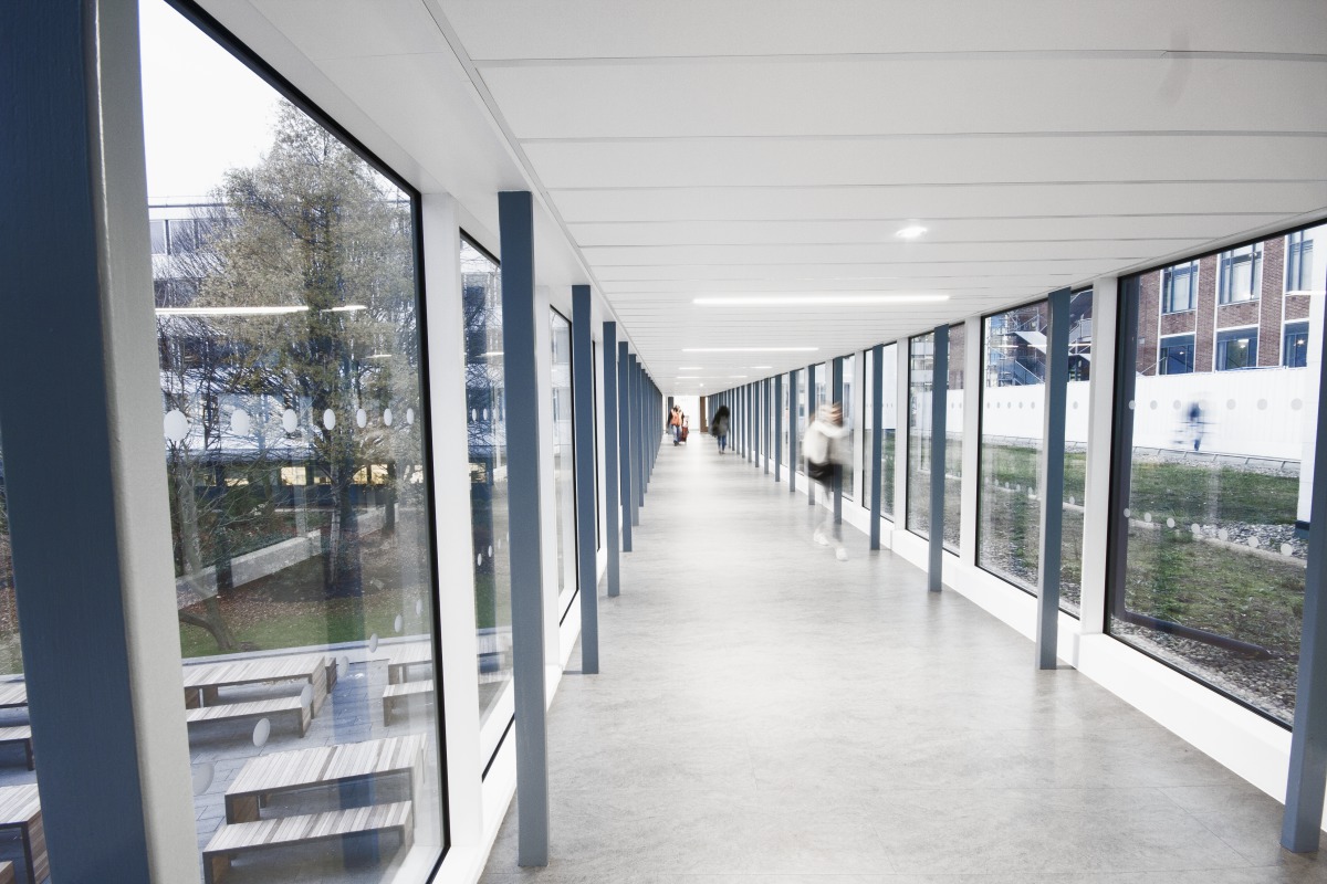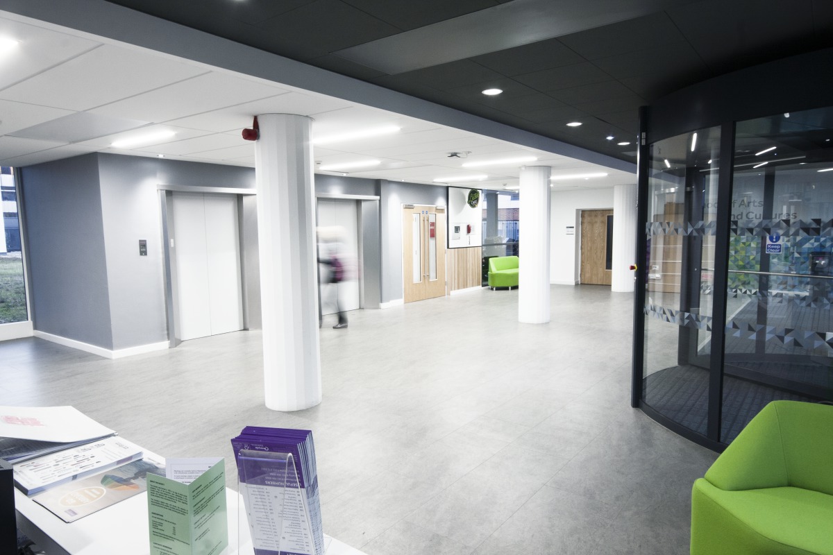 ‘Les travaux étaient vastes et concernaient l’ensemble de l’aile sud du bâtiment. Les travaux de modernisation de l'entrée sud ainsi que le café et l'espace des ordinateurs ont été intégrés pendant la durée du projet. Le bâtiment est resté ouvert au public pendant la période de construction, un logement partagé étant prévu pour le personnel académique.’