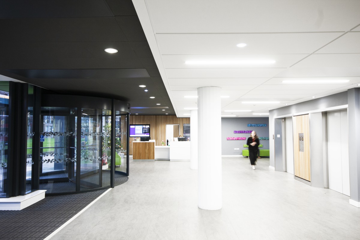 ‘Les dalles de plafond Focus nous ont permis d'obtenir la finition propre et uniforme requise. En coordonnant soigneusement les dalles avec les gaines techniques et l'éclairage intégrés, nous avons fourni un design attrayant dans les limites du budget, permettant un accès à long terme pour la maintenance.’