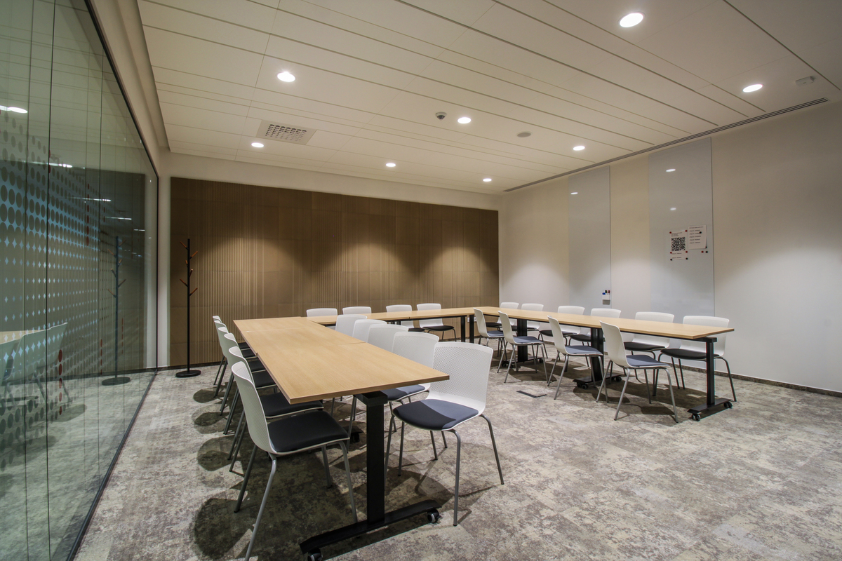 La combinaison des deux systèmes acoustiques a permis de créer une solution cohérente et fonctionnelle, en parfaite adéquation avec l’architecture des bureaux, sans jamais la dominer. L’espace se distingue par une ambiance moderne, élégante et sereine.