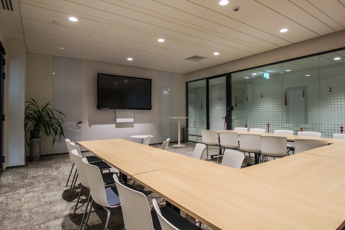 Les architectes d’intérieur d’InaAs ont sélectionné les systèmes Ecophon Focus™ Lp et Ecophon Solo™ Baffle, capables de réduire efficacement l’écho et les bruits perturbateurs, y compris dans les espaces à surfaces dures ou à forte fréquentation. Les baffles Solo™ Baffle, suspendus librement, contribuent également à l’esthétique contemporaine des lieux, en associant impact visuel et performance acoustique.