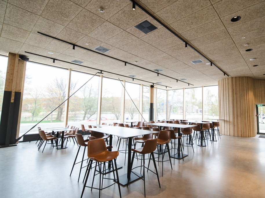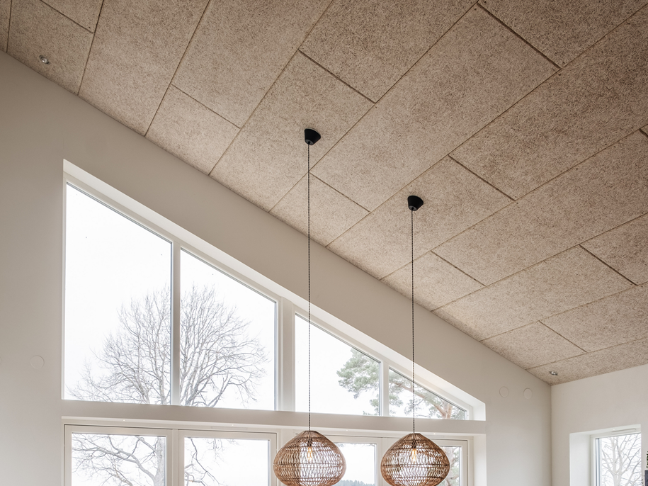 La gamme Ecophon Saga™ réunit des solutions en fibre de bois au design élégant, qui offrent une absorption acoustique optimale de classe A lorsqu’elles sont associées à de la laine minérale.
