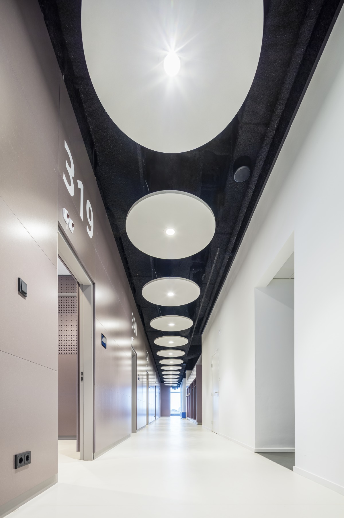 Sur la base d'un plan d'éclairage sophistiqué, le format XL des panneaux est conçu pour être utilisé avec le luminaire Dot LED intégré.