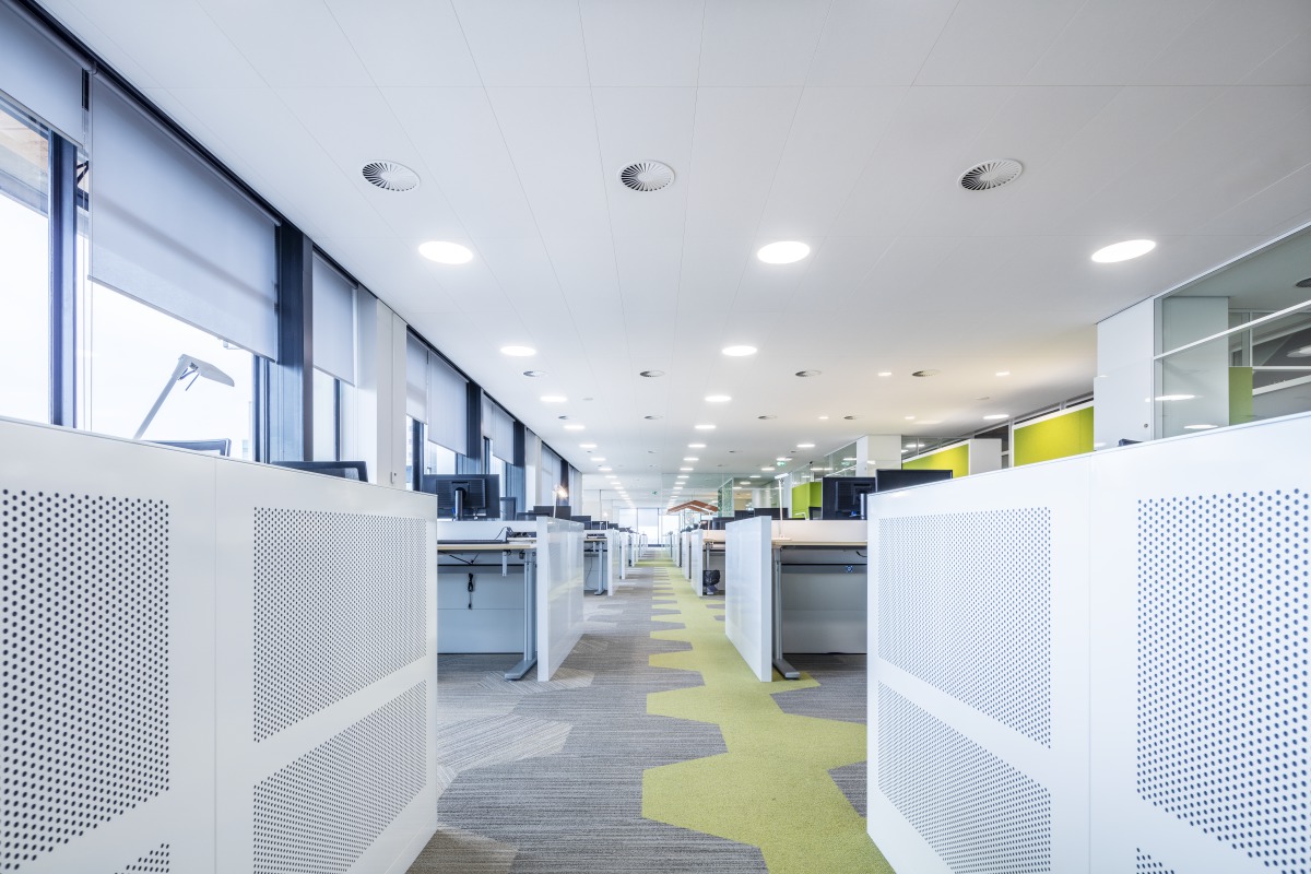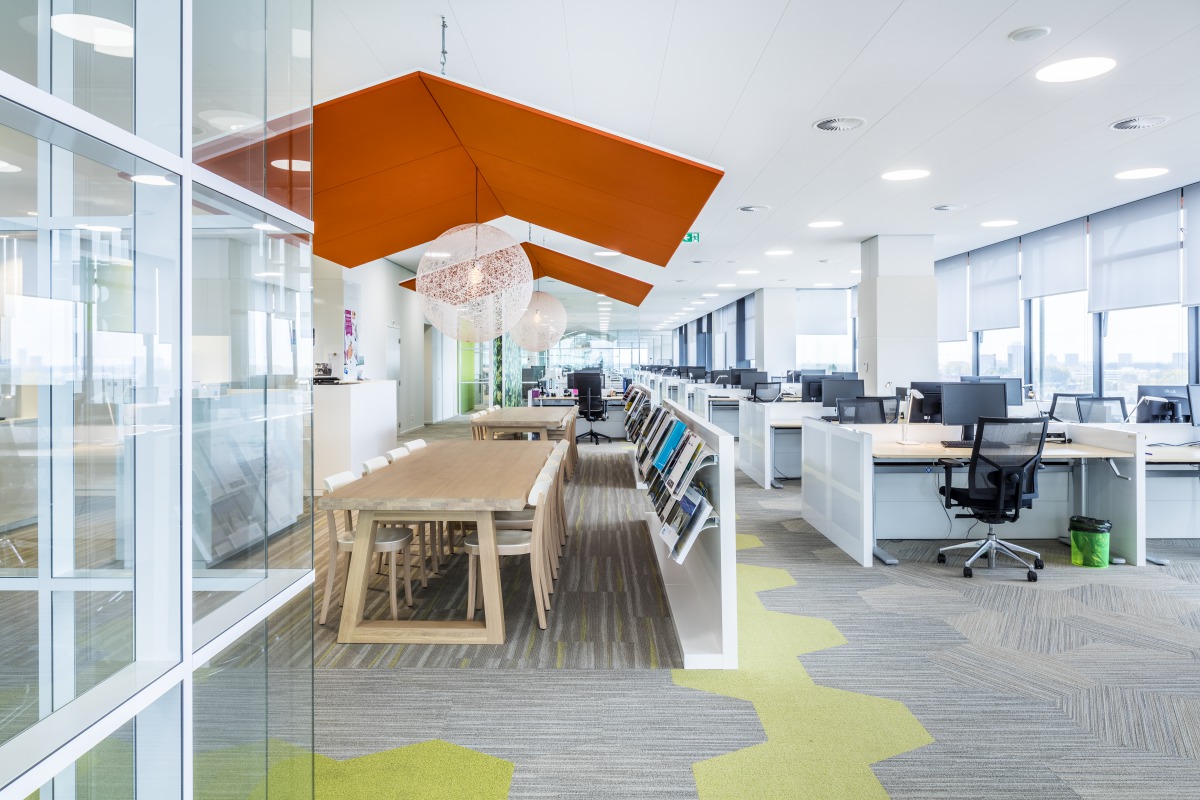 “Les produits Ecophon ont répondu à tous nos critères”, confirme Jaap de Oude, Responsable du Département Technique chez Jaarbeurs Utrecht. “Nous voulions réduire les niveaux sonores dans les bureaux. Ce qui est définitivement extrêment important dans les open-spaces. Les niveaux sonores sont dorénavant plus bas. Il n'y a plus de réverbération. Même lorsque les gens sont en vidéo conférences et qu'ils sont en train d'utiliser les systèmes audios, le niveau de bruit reste normal malgré tout. Nous n'entendons plus le bruit en provenance de la climatisation également. L'environnement sonore semble naturel. Avant la rénovation des lieux, le son était souvent élevé, en partie compensé par le revêtement au sol ; aujourd'hui le bruit est suffisamment absorbé par les plafonds et ce malgré une surface au sol dure. Grâce au plafond, l'environnement est calme. Le son était souvent fort avant la rénovation, en partie compensée par les revêtements de sol, mais maintenant, le bruit est suffisamment absorbée par les plafonds, même si le sol est encore difficile. Les plafonds offrent un environnement calme. Ce qui est vite devenu évident au moment de l'étude pilote que nous avions réalisée auparavant dans les bureaux. Ils créent un environnement de travail agréable et s'intègrent parfaitement dans notre nouveau concept de salles de réunions chez Jaarbeurs.”