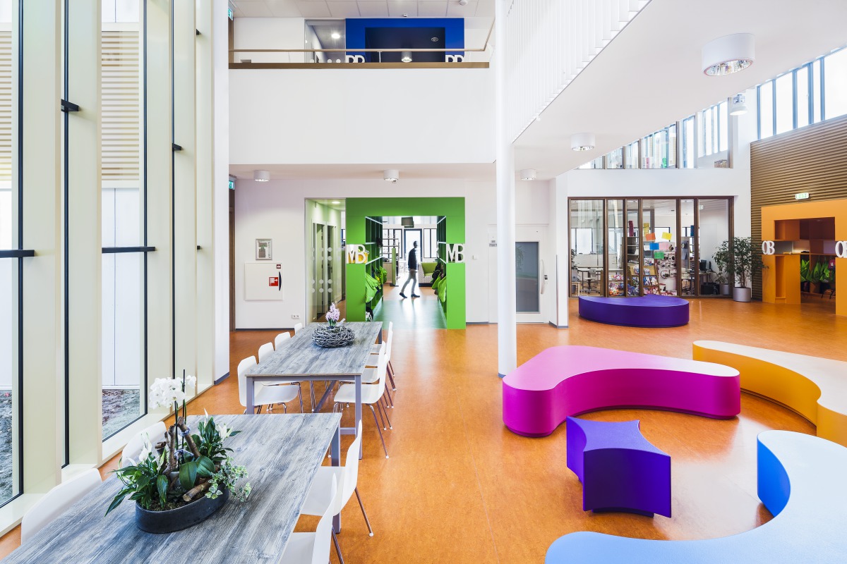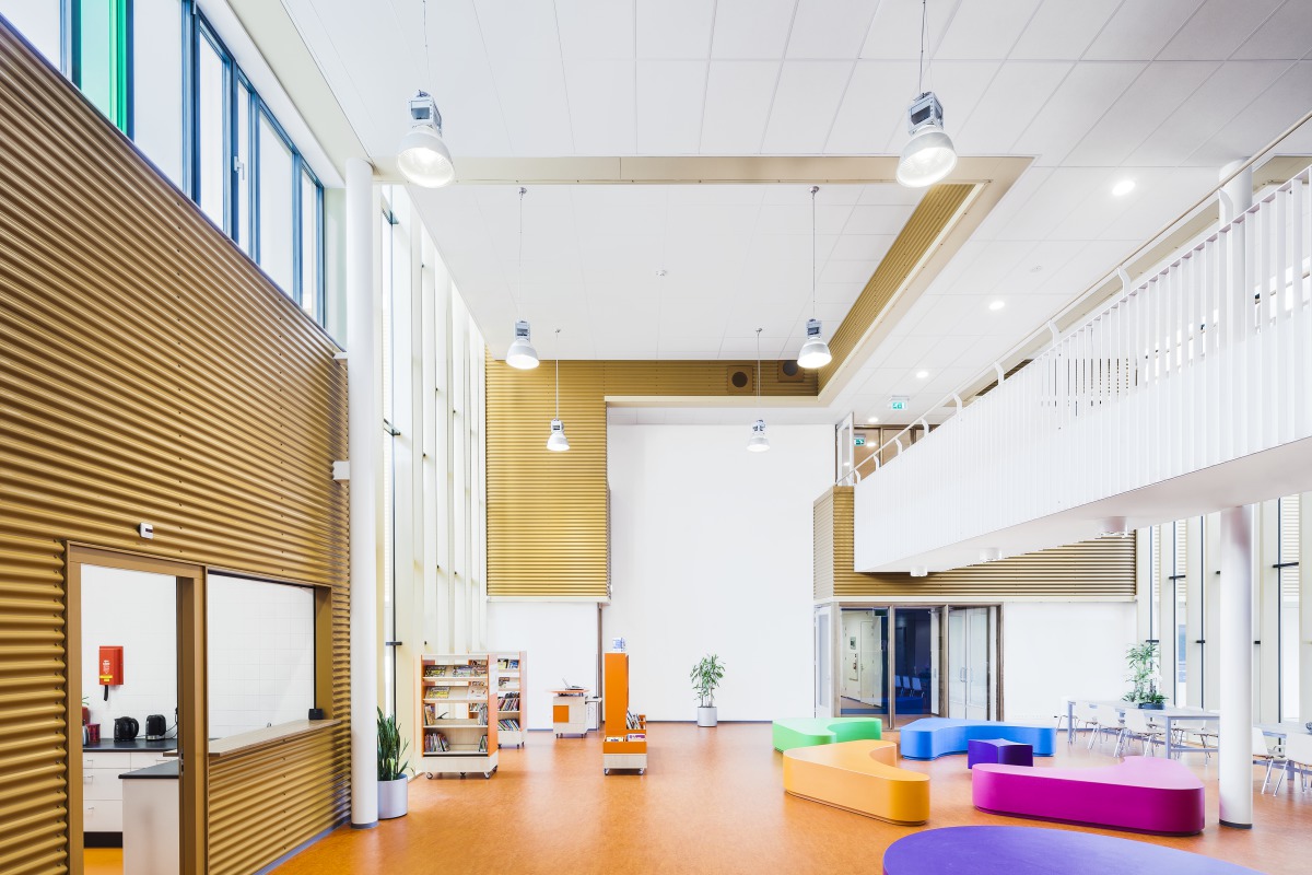 Wim Finkers, le directeur de l’établissement, nous raconte son expérience et celle de ses équipes : « Le nouveau bâtiment est un ajout parfait pour nous. Il y a un certain luxe d’avoir une si bonne acoustique. Dans nos anciens locaux, on pouvait tous entendre ce que les autres faisaient. Le bruit des chaises que l’on déplaçait réverbérait dans tout le bâtiment. Maintenant, c’est vraiment calme là où on en a besoin. À plusieurs reprises déjà, des nouveaux parents qui visitaient les locaux nous ont fait remarquer à quel point ils les trouvaient silencieux. Même aux endroits où trois classes travaillent simultanément à proximité, on a l’impression qu’il y a 30 enfants, et non 70 ! Le son reste exactement là où il doit être. C’est agréable pour les élèves, ainsi que pour les enseignants.”