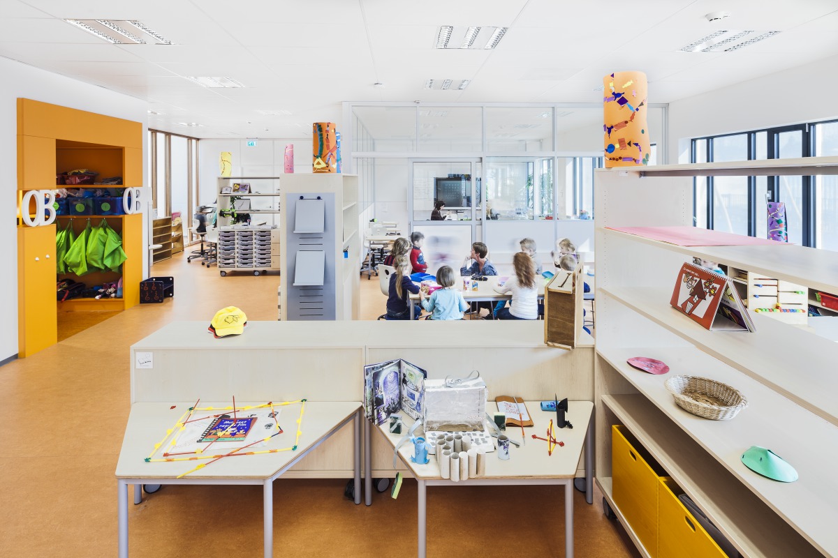 Daan Josee, de l’agence Kristinsson Architects, qui a conçu le bâtiment de l’école, nous explique : " D’un point de vue spatial, les différentes activités ont lieu dans ce qu’on a appelé des blocs. Ceux-ci sont répartis autour d’une zone commune polyvalente que tout le monde utilise, et pour laquelle tout le monde est responsable. L’espace commun est perçu comme une extension de la salle de classe de chaque niveau, où les enfants se rendent pour travailler dès qu’ils le peuvent. La localisation centrale de cet espace est indispensable, pour permettre un passage facile de chaque enfant depuis sa salle de classe sans interrompre les autres.”