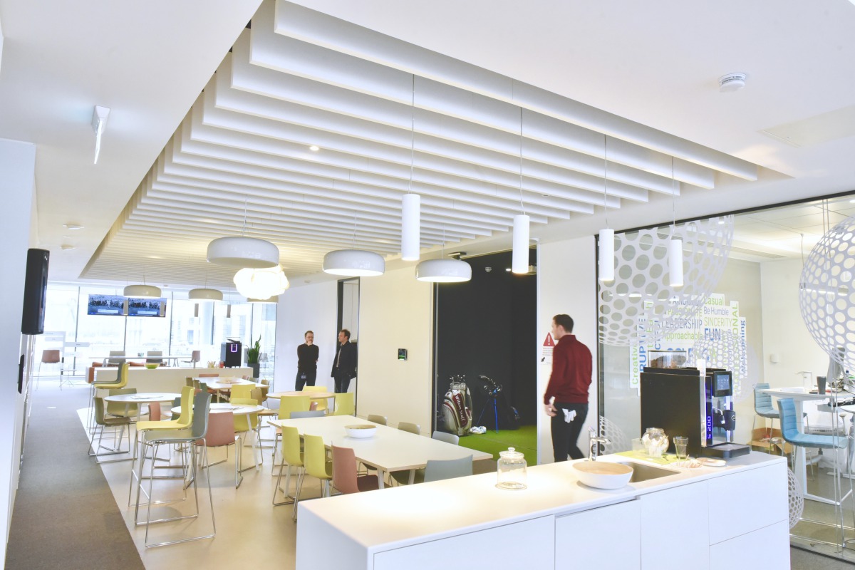Ecophon’s Andrew Acheson said, “I think they’ve achieved a very interesting look with the baffles and plasterboard edging.” Mark also added, “We had good local support from the Ecophon team and the client is very happy with their new workspace.”