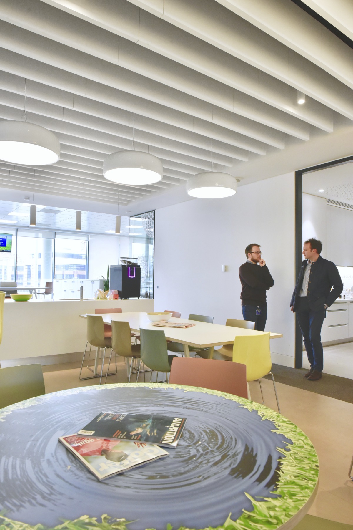 He explained that Solo Baffles were utilised in the board room, meeting rooms, breakout spaces, and cafeteria/kitchen areas in order to assist with acoustic quality. “They are a nice, simple, aesthetically pleasing product, allowing easy access to building services above. They have worked well in practice assisting with acoustics in a busy open plan working environment.”
