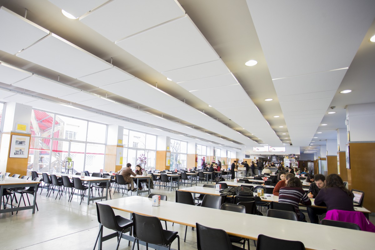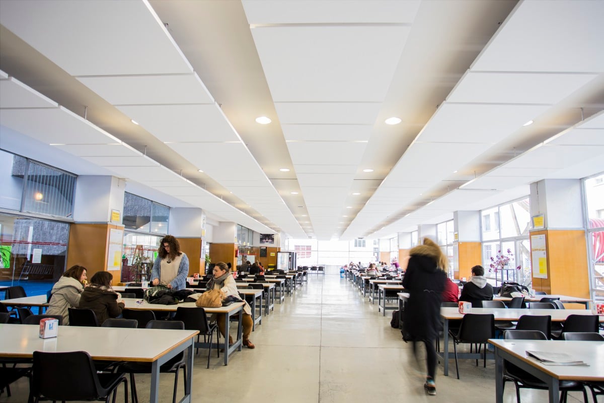 La mensa degli studenti presso il collegio di architettura di Madrid, ETSAM-UPM, è stata trattata con il sistema acustico Master Matrix per migliorare l'ambiente sonoro.