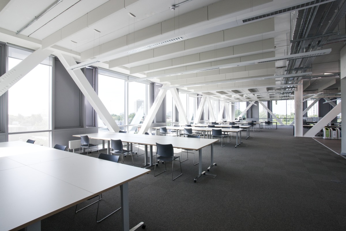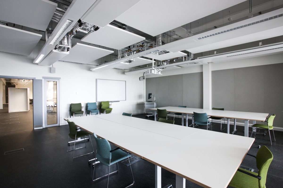 Ha descritto le principali aree in cui sono state installate le soluzioni acustiche Ecophon: "Ecophon ha una famiglia di prodotti ben progettata, che consente flessibilità di progettazione. Solo Baffle è stato installato nell'atrio e nelle aree di insegnamento del piano aperto come parte di un ritmo di illuminazione, deflettori acustici e percorsi di servizio. Il Master F è stato usato nelle aree dell'atrio e della circolazione. Solo Square ci ha aiutato a creare un piano a soffitto che consentisse la distribuzione dei servizi sopra ".
