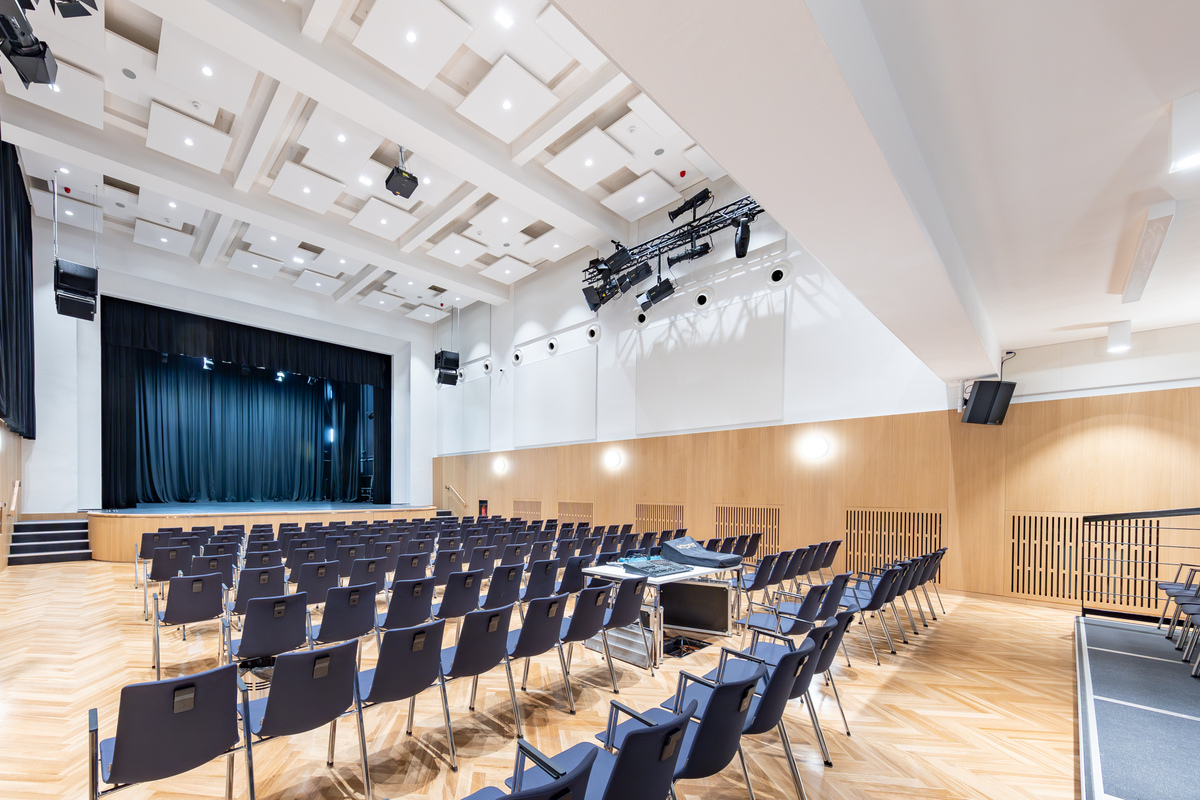 L’acustica spaziale ha acquisito una nuova dimensione grazie ai nostri pannelli acustici, tra cui Ecophon Solo™ Square e Rectangle e Ecophon Akusto™ Wall C. Questi prodotti hanno trasformato la sala grande in uno spazio che soddisfa sia l'udito che la vista. L’acustica spaziale di alta qualità, offerta da questi pannelli fonoassorbenti, non solo migliora la salute e il benessere delle persone, ma gioca un ruolo cruciale nella qualità dell’esperienza culturale e nell’apprezzamento estetico dello spazio.