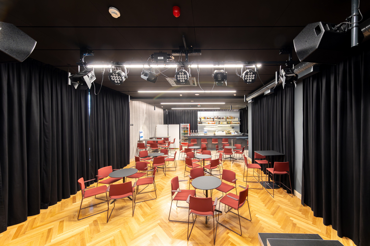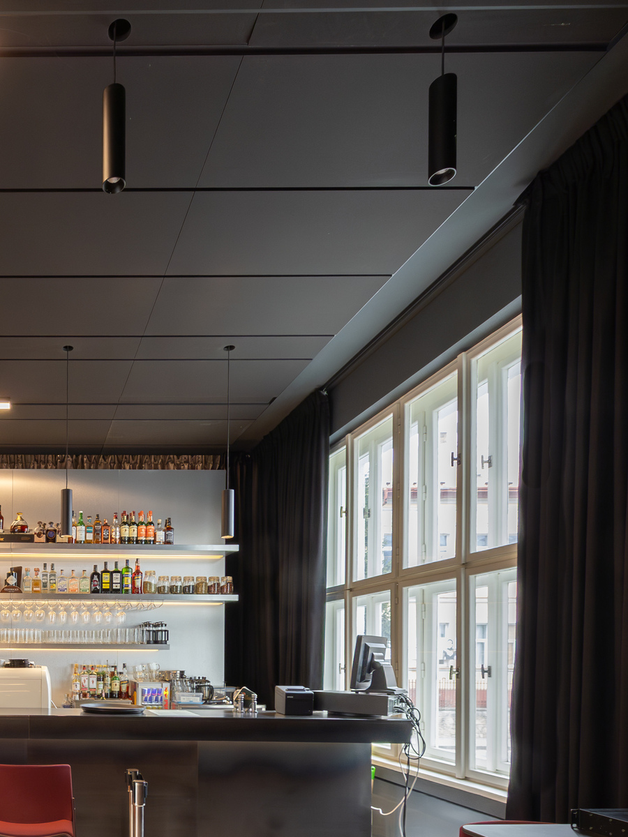 Il caffè del cinema è stato abbellito con Ecophon Focus™ Lp in una elegante finitura nera, esaltando il design raffinato dell’ambiente. L’acustica della sala, che riduce l'eco e migliora l'intelligibilità del parlato, è apprezzata tanto dai visitatori quanto dal personale del Cinema Hviezda. Anche gli uffici hanno beneficiato di un’importante ristrutturazione.