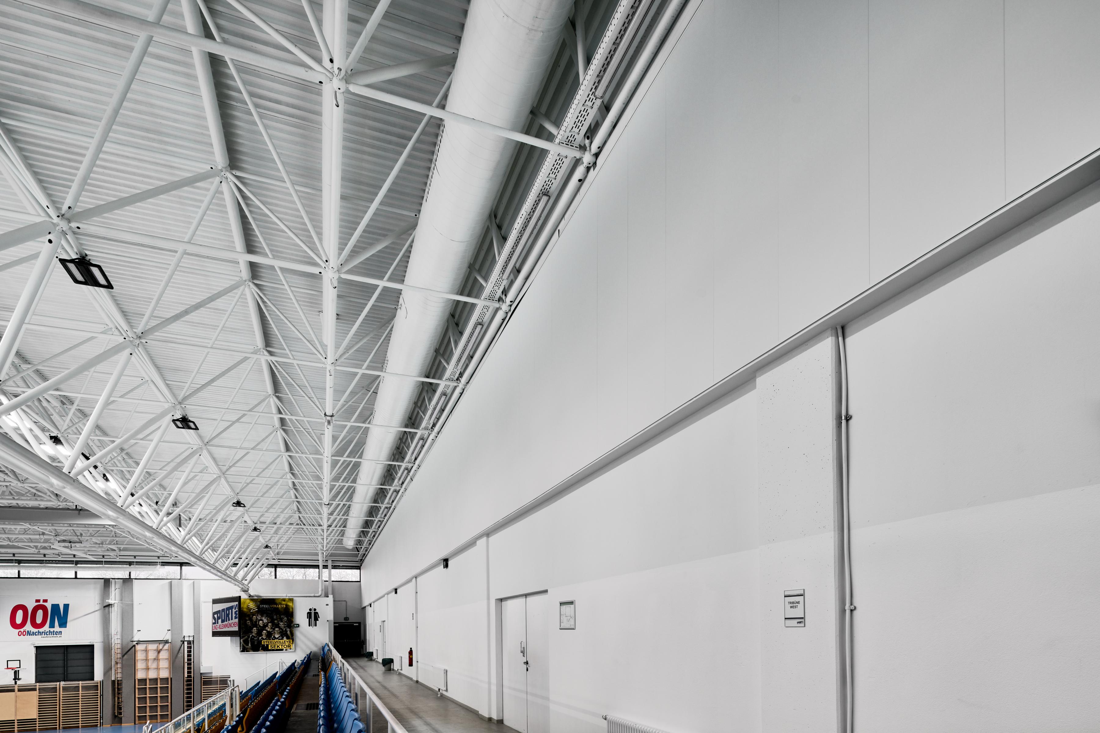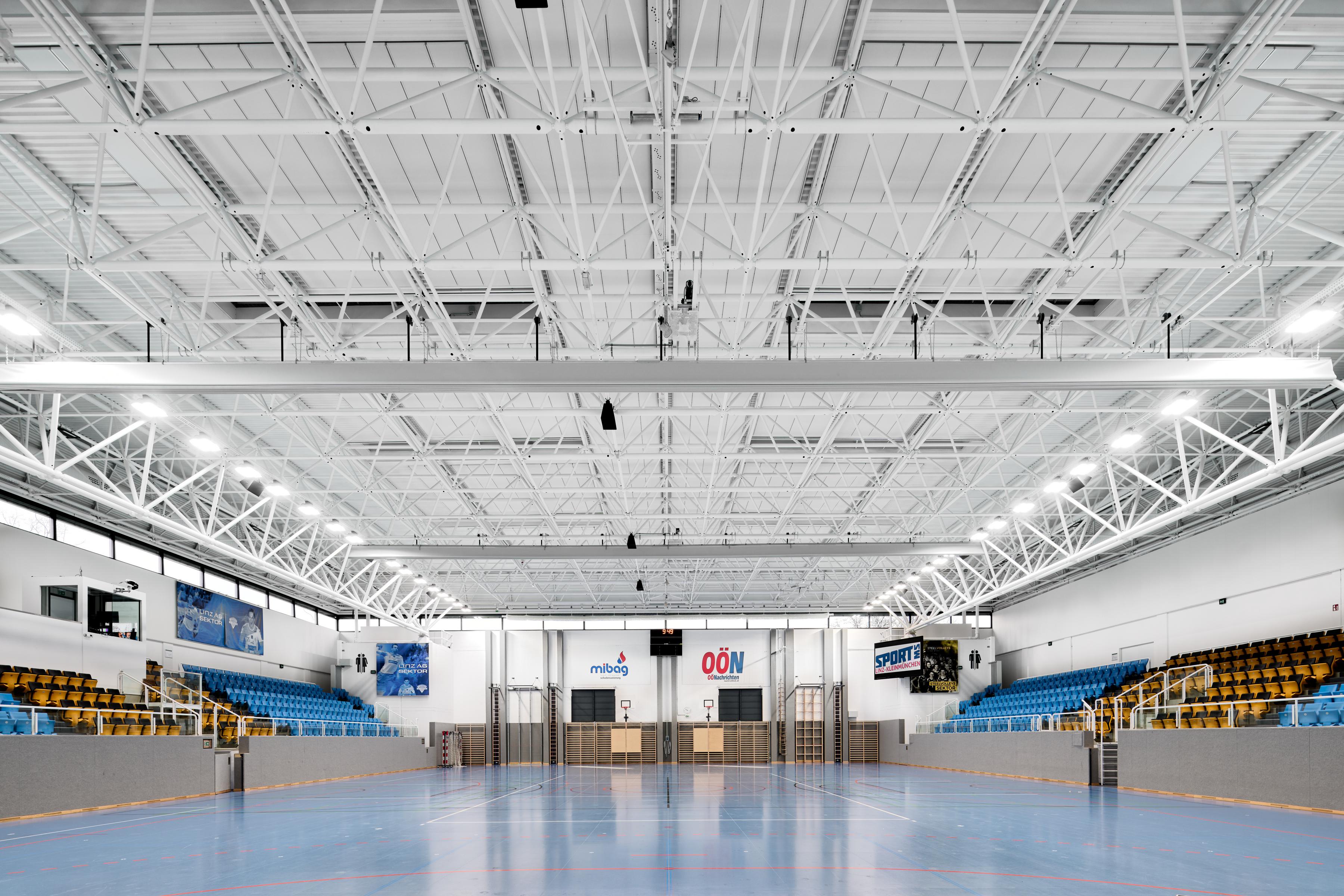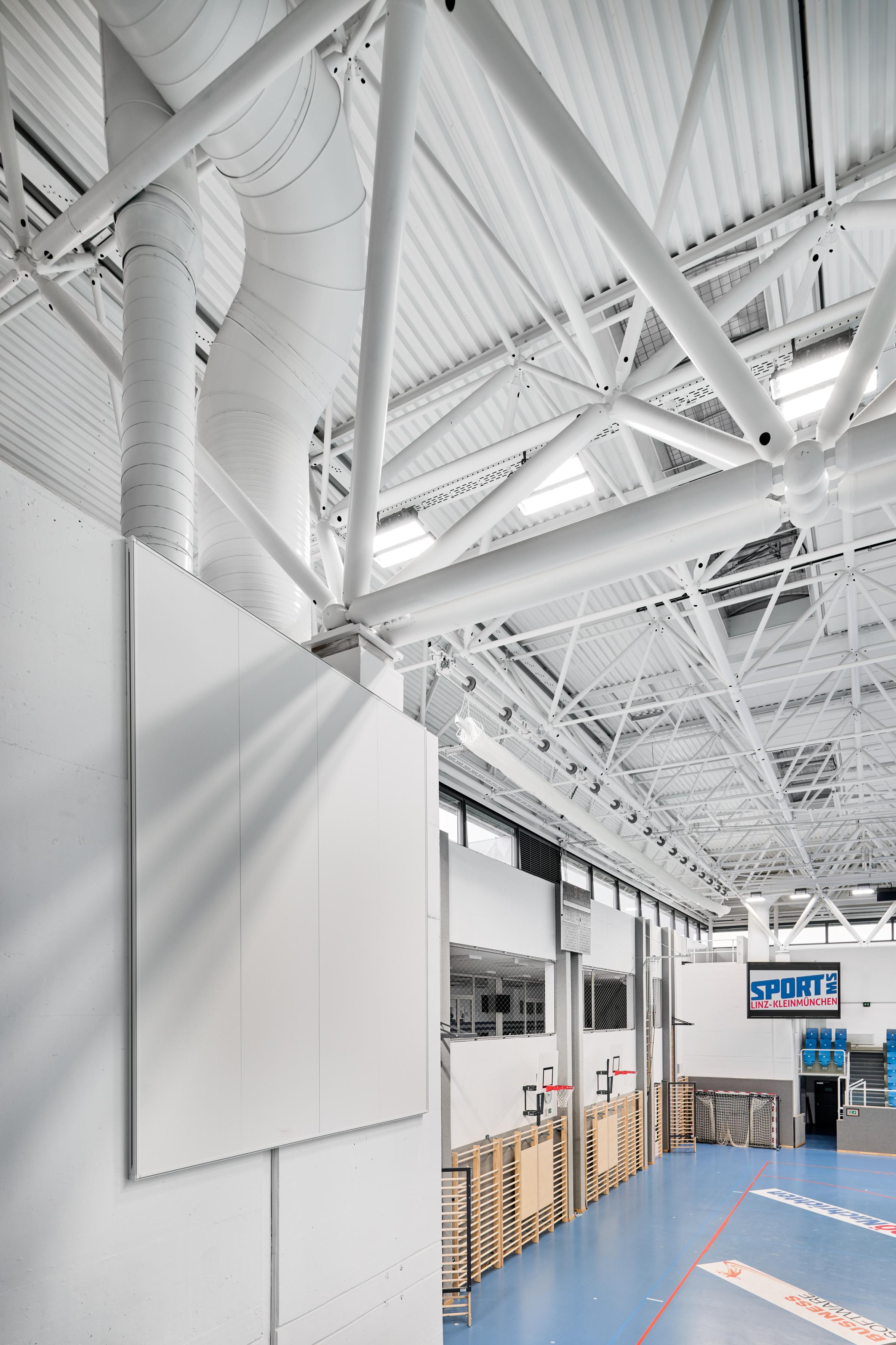 La palestra della scuola di sport a Kleinmünchen, in Austria, è stata ampiamente ristrutturata. Per rendere la palestra adatta per gli sport di pallamano e pallavolo nella lega nazionale austriaca, il tetto esistente della sala è stato elevato a 9 metri.