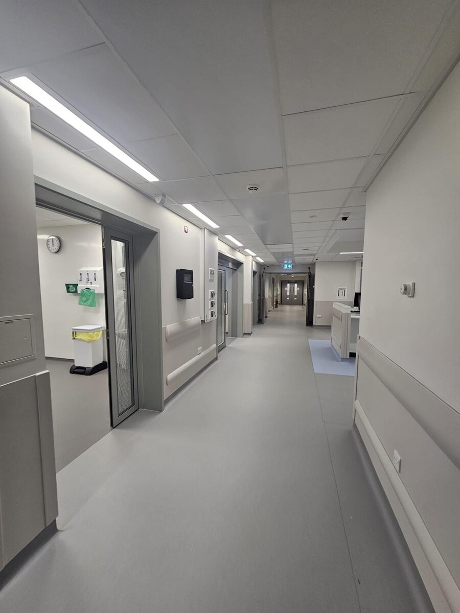 Akustika atliko itin svarbų vaidmenį viso projekto metu – specialiai pritaikyti sprendimai buvo taikomi tiek klinikinėse, tiek neklinikinėse erdvėse. Klinikinėse patalpose buvo pasirinktos Ecophon Hygiene Advance™ A plokštės dėl išskirtinio valymo paprastumo ir atsparumo kasdieniam dezinfekavimui stipriomis cheminėmis priemonėmis. Aukšti garso sugerties rodikliai (A arba B klasė) užtikrina, kad procedūros vyktų diskretiškai ir konfidencialiai, išsaugant pacientų orumą bei komfortą.