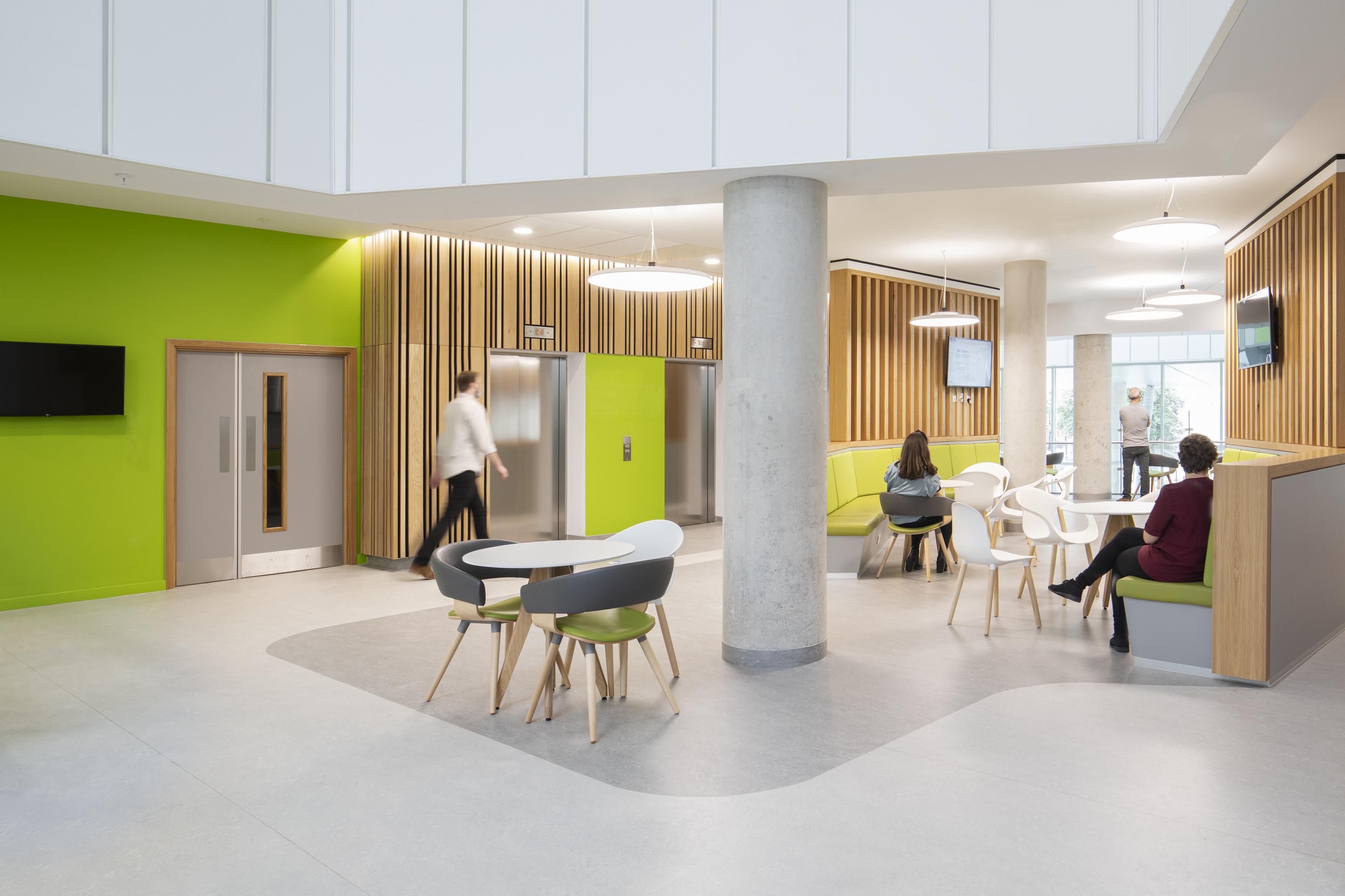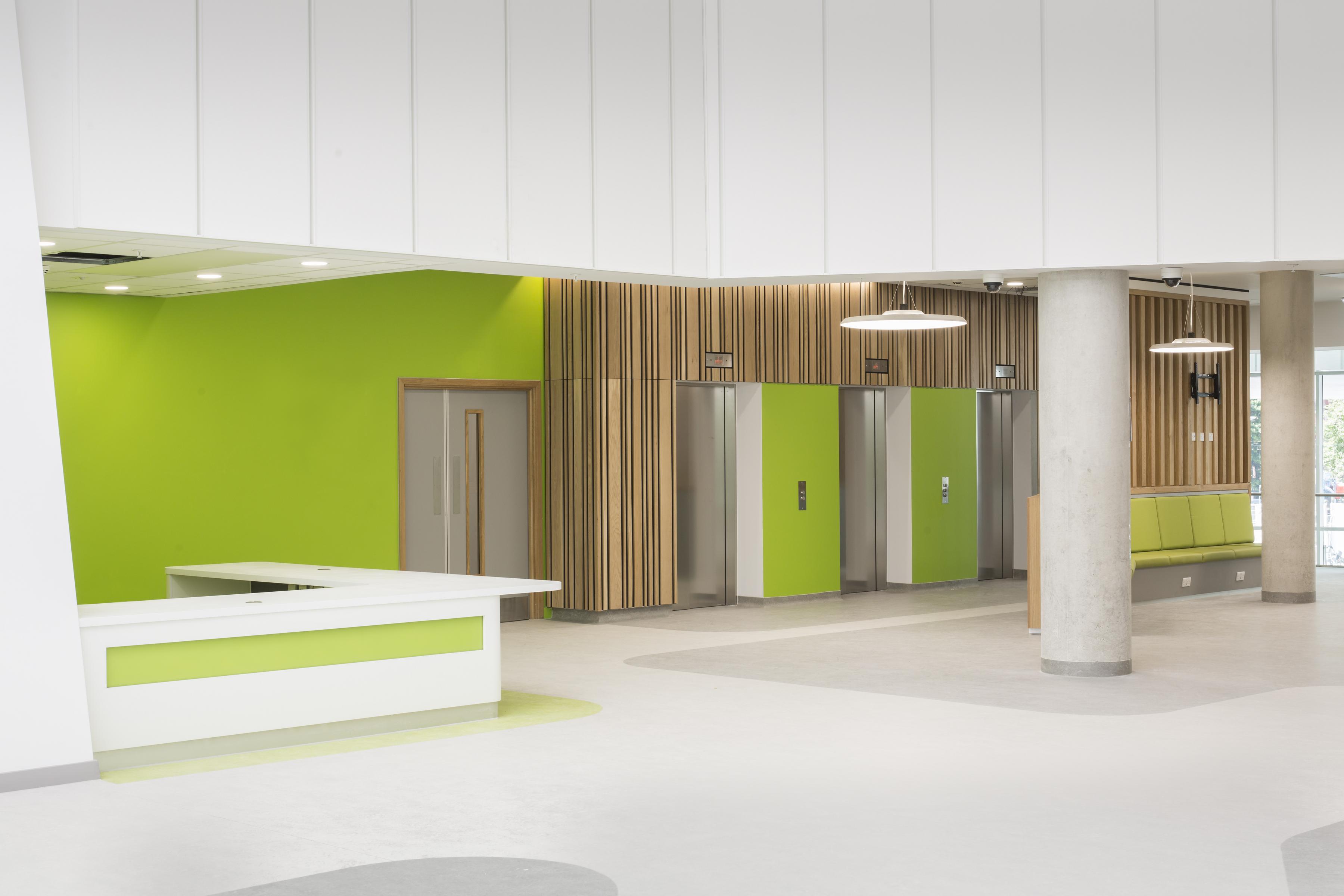 Ecophon dalyvavimas šiuose ankstyvuosiuose projektavimo etapuose leido sukurti hibridinę sistemą taip, kad ji atitiktų sudėtingus akustinius ir estetinius reikalavimus, tačiau vis tiek būtų ekonomiškas sprendimas. Taip pat galėjome užtikrinti, kad sistema atitiktų infekcijų kontrolės ir valymo reikalavimus. Dėl specialisto montuotojo Horbury žinių ir patirties, paremtos Ecophon techninėmis žiniomis, galutinis rezultatas yra stulbinantis. Horbury's Lee Murray pridūrė, kad „pateikti pjovimo sąrašai ir šablonai palengvino jų sekimą“, o „Ecophon sistemos lankstumas leido mums, jei reikia, pataisyti dalykus vietoje“.