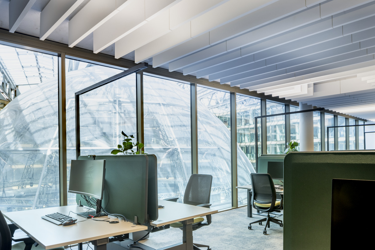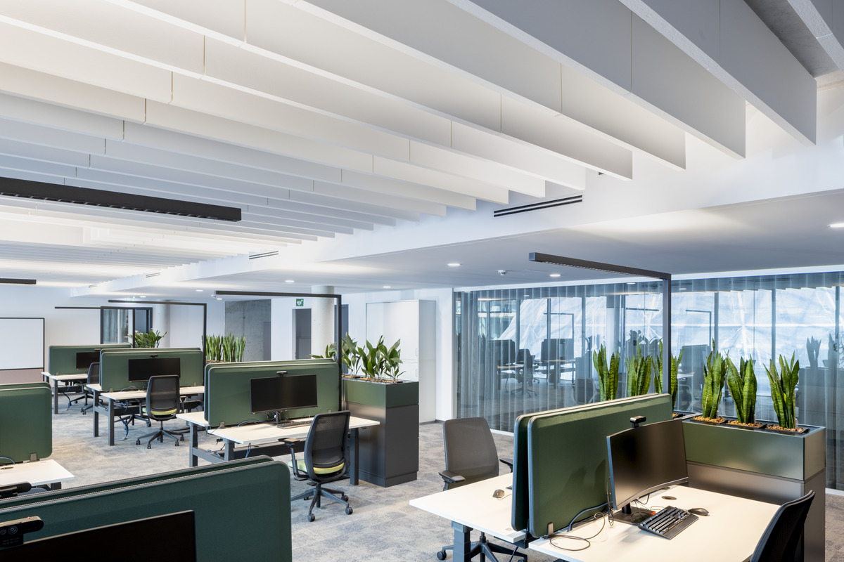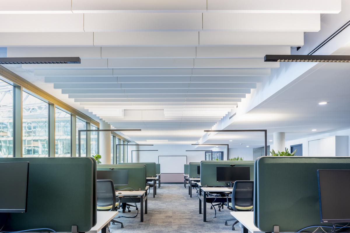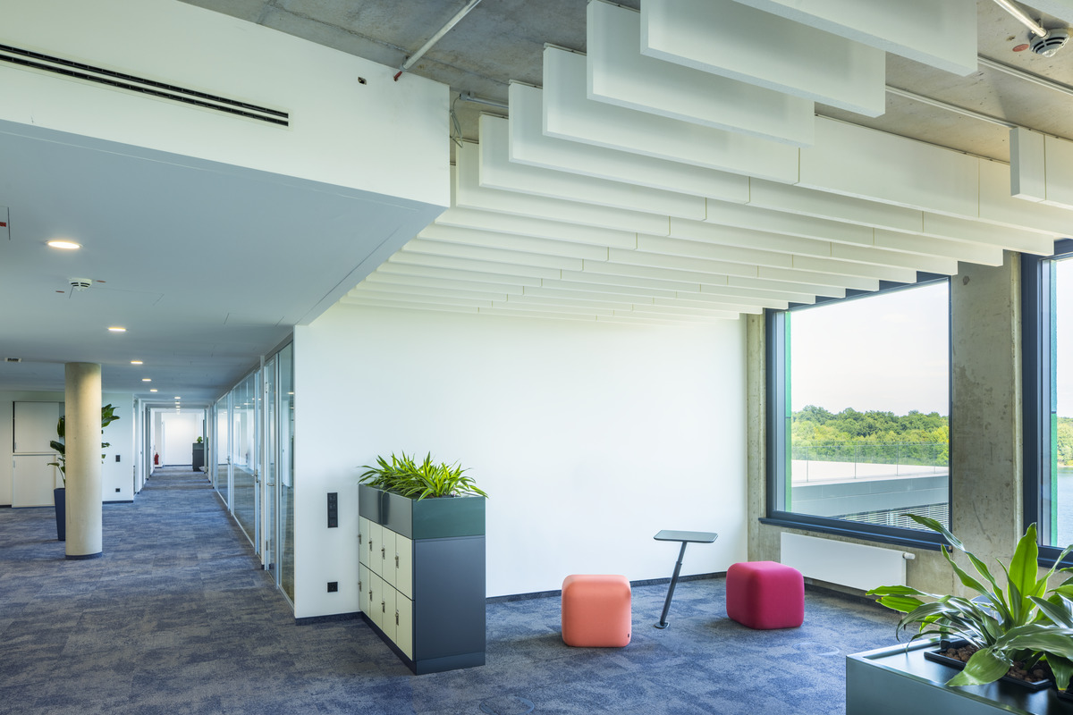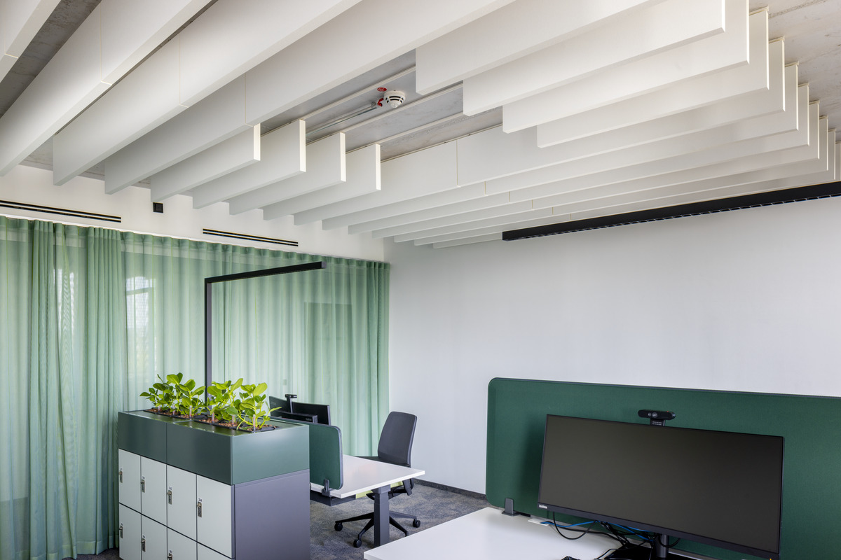 Nuo pat planavimo pradžios prioritetu buvo laikoma patalpų akustika. Dizaino komanda bendradarbiavo su Ecophon, integruodama Ecophon Solo™ Baffle plokštes, įrengtas vertikaliai, siekiant užtikrinti aukštą akustinę kokybę. Lankstus jų aukštis ir tarpai leido architektams išlaikyti atvirą ir elegantišką erdvę, tuo pačiu efektyviai sugeriant garsą. Be to, plokštės papildo interjero koncepciją, derėdamos su baldais ir spalvų schema.