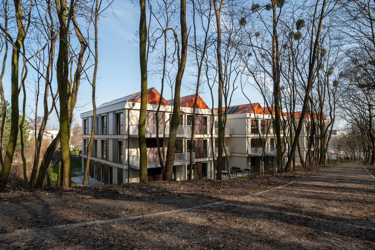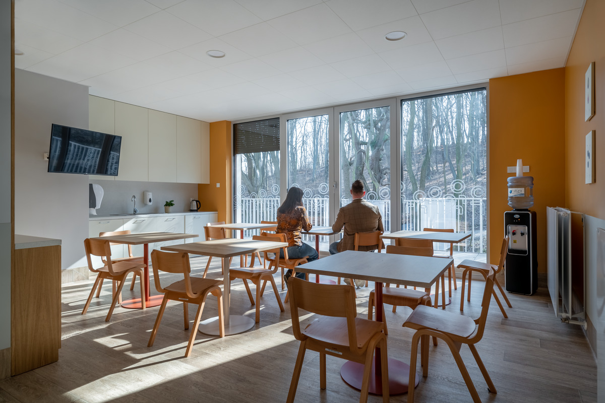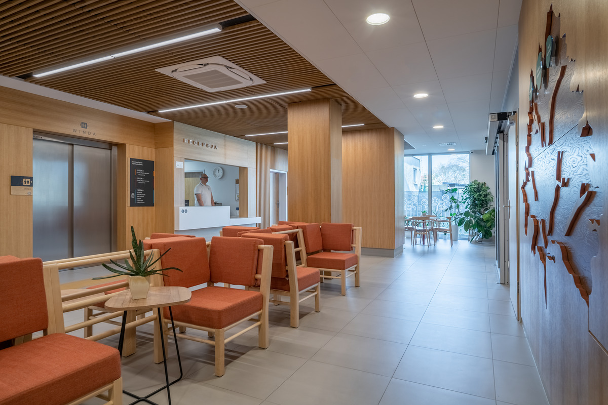 Trumpalaikės priežiūros centras Gdanske nustato naują standartą, derindamas profesionalią priežiūrą su empatišku požiūriu į aplinką. Visame pastate įgyvendinti įvairūs sensoriniams poreikiams pritaikyti sprendimai: garsą sugeriančios lubos - aidui ir triukšmui mažinti, tinkamas apšvietimas, prieiga prie žalumos ir ramios, namų aplinką primenančios vidaus erdvės.