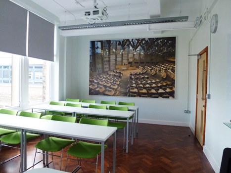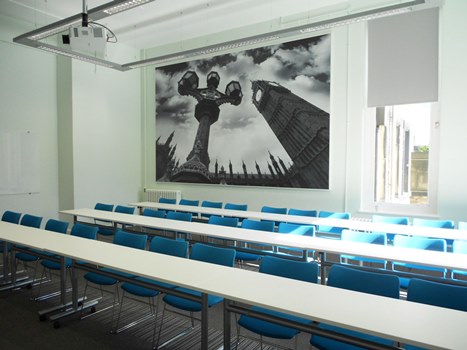 At the University of Sheffield, the lecture theatres and rooms feature large images that reflect the department subject. Several of these lecture rooms were recently refurbished and in the process some acoustic issues became apparent. High ceilings and hard floors with nothing to absorb sound meant that the rooms suffered from high reverberation times, which made them unsuitable for teaching.