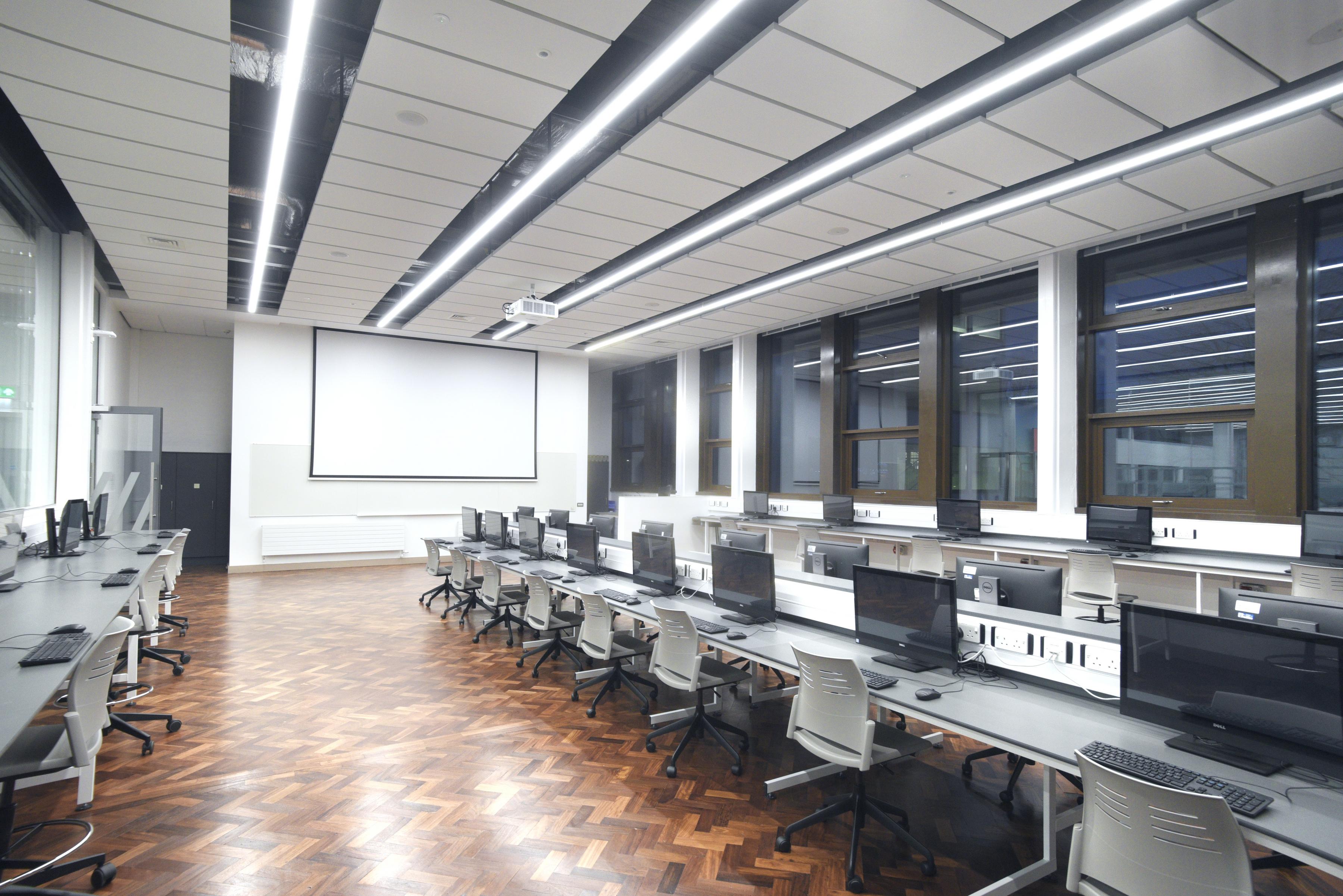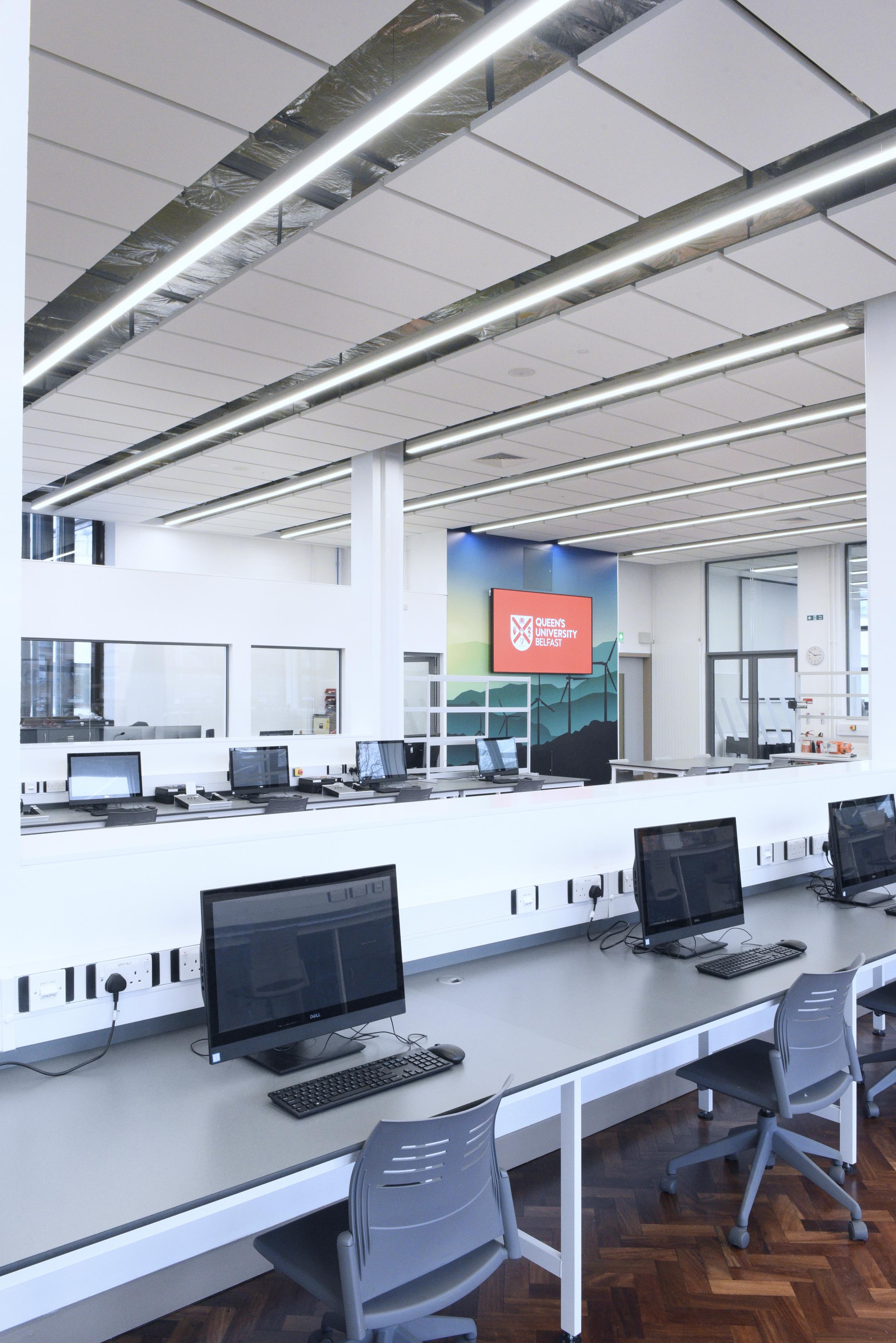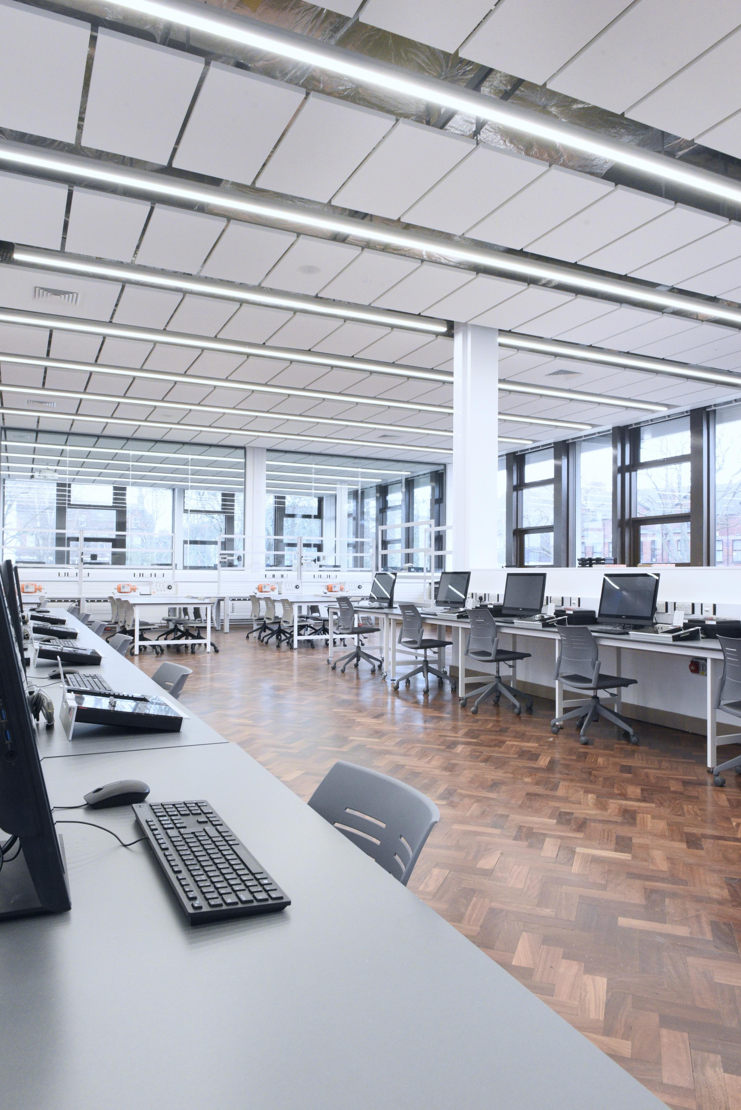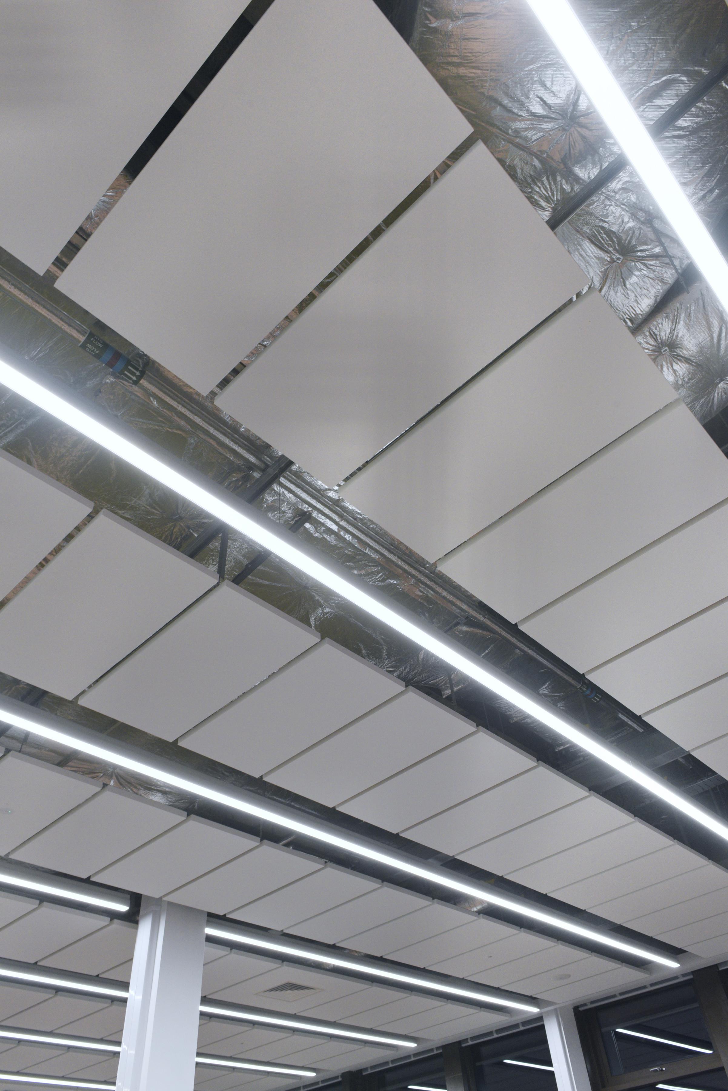 Współpracując z Kennedy Fitzgerald Architects LLP i uniwersytetem, Ecophon był w stanie doradzić w sprawie montażu systemu Ecophon Solo Matrix w nowym Laboratorium Zrównoważonej Energii.