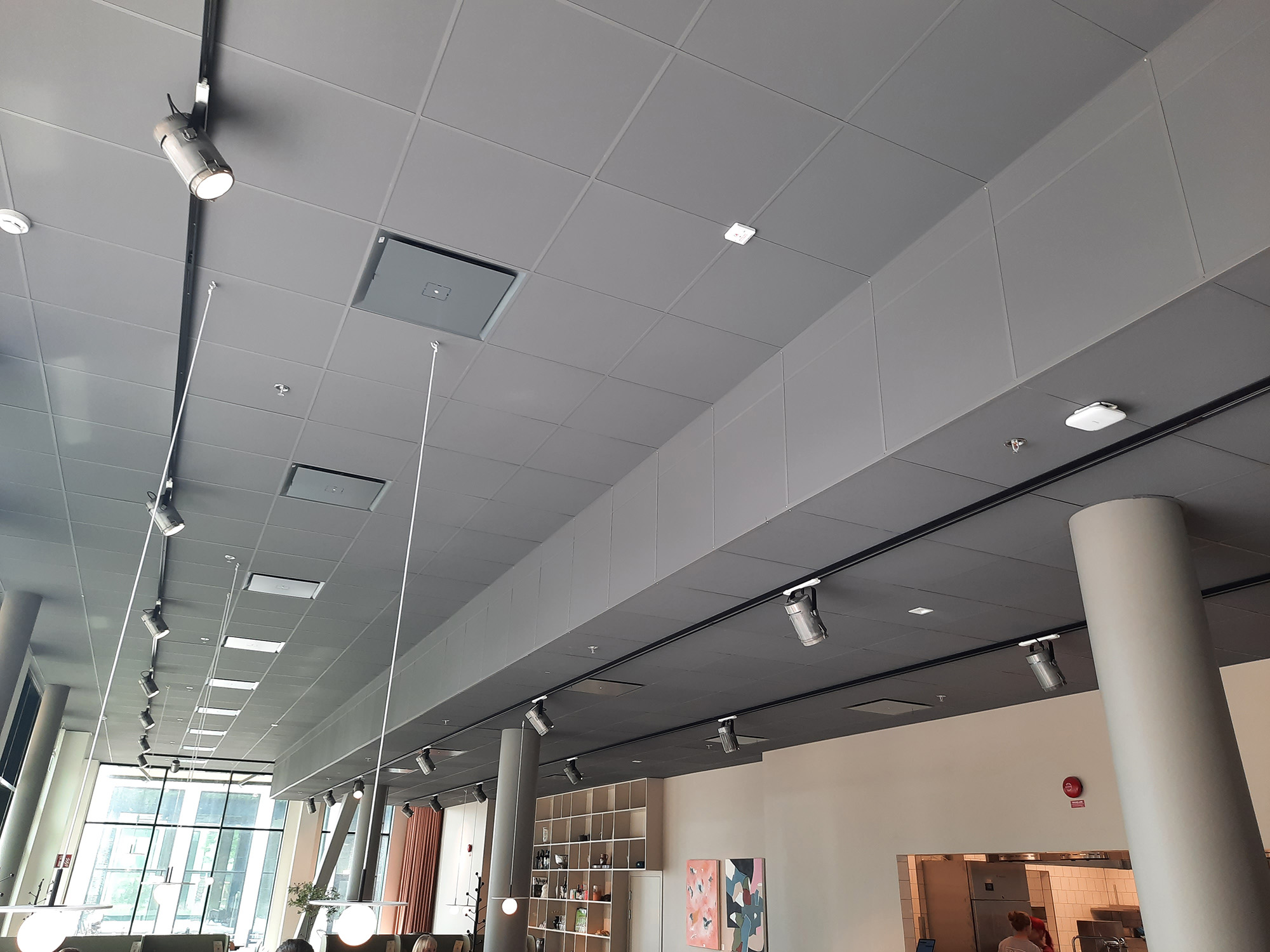 – Vi strävar alltid efter att använda produkter med utbytbara komponenter. Modulbaserade tak bidrar till den flexibla designen, eftersom nedpendlade absorbenter monterade i bärverk enkelt kan demonteras och bytas ut. Det är ett exempel på hur vi minskar mängden avfall som byggnaden genererar under sin livstid.