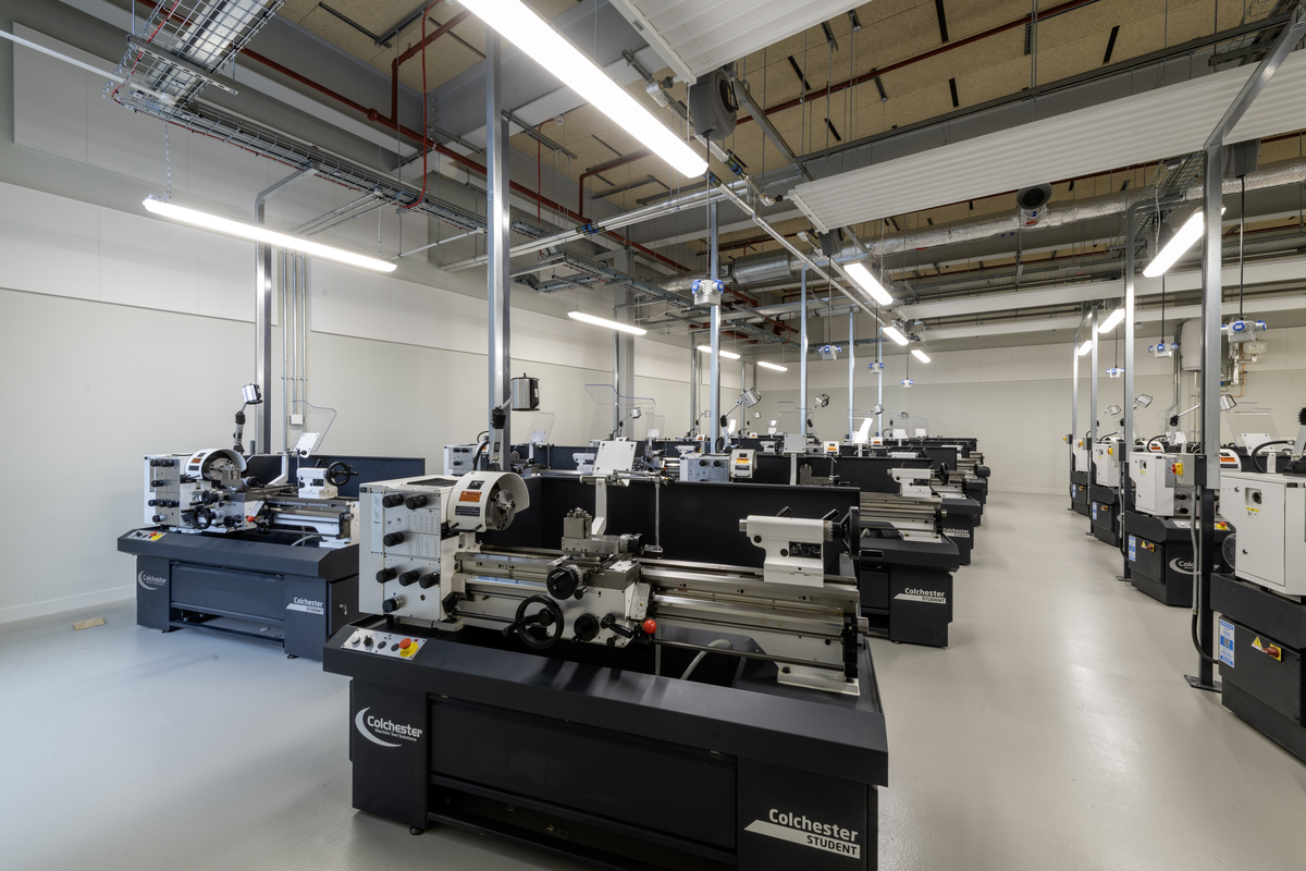 This landmark project marks the first significant adoption of the Scottish Government’s ‘Net Zero Public Sector Buildings Standard.’ Upon completion, the campus will be ‘net zero ready,’ reflecting Fife College’s commitment to sustainability and future-proofing educational infrastructure. Inside, the campus features industry-standard workshops for engineering and construction, and a dedicated university hub.