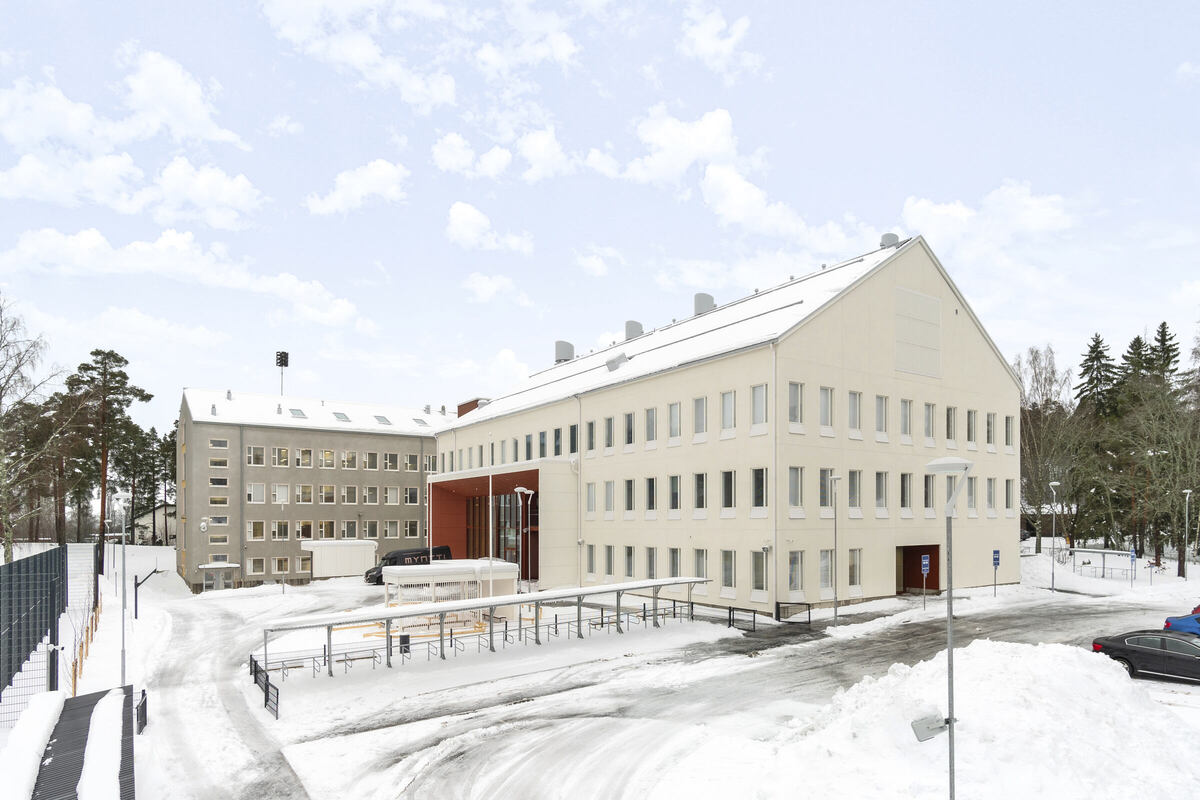 The three-story building, developed by construction company Lapti Oy as a turnkey project, includes classrooms, a library, youth facilities, an outdoor area, and a sports hall. It accompanies a pre-existing school building that was renovated in 2016. The HYK school complex is designed to accommodate approximately 900 students and 100 staff members.